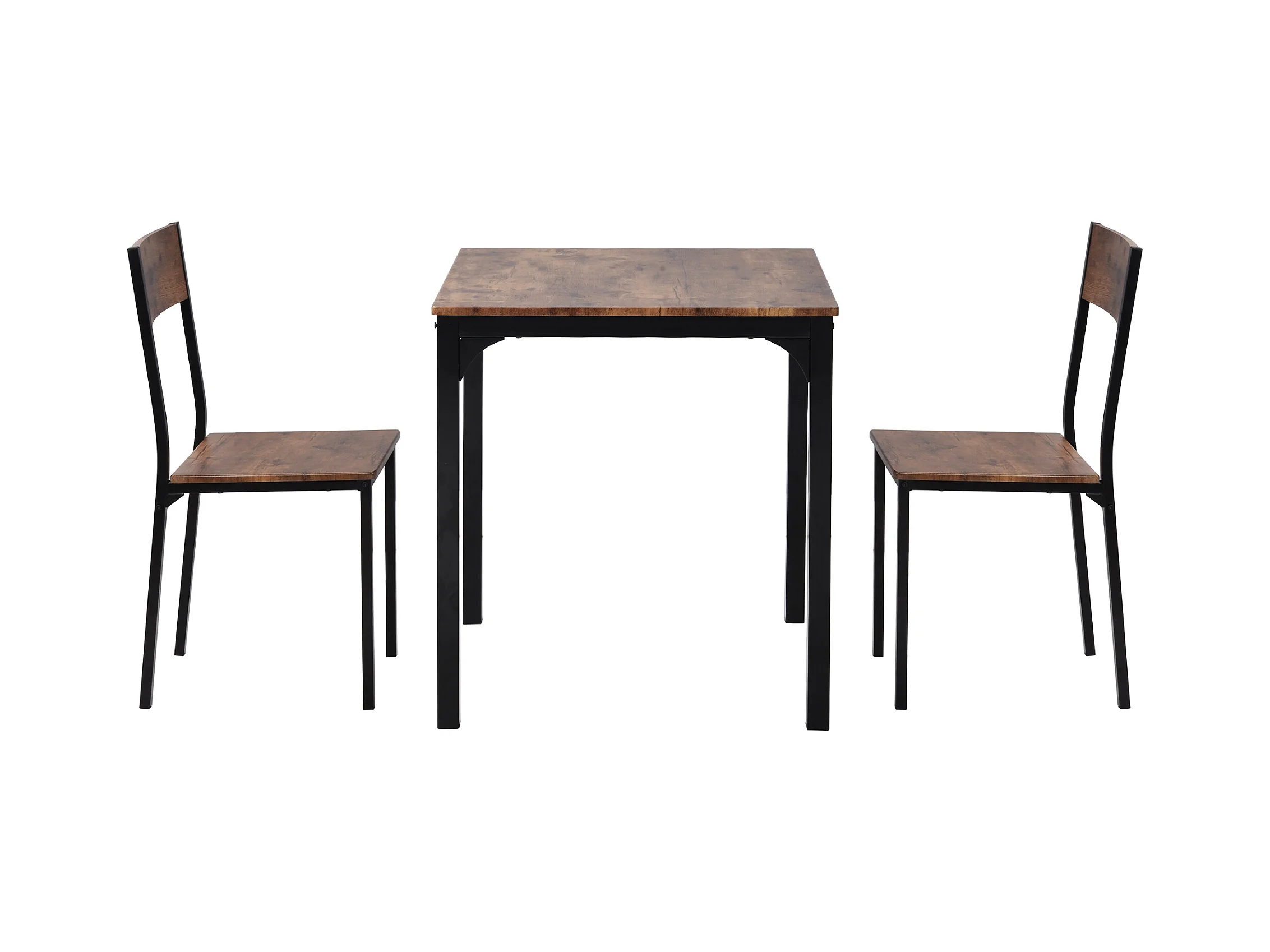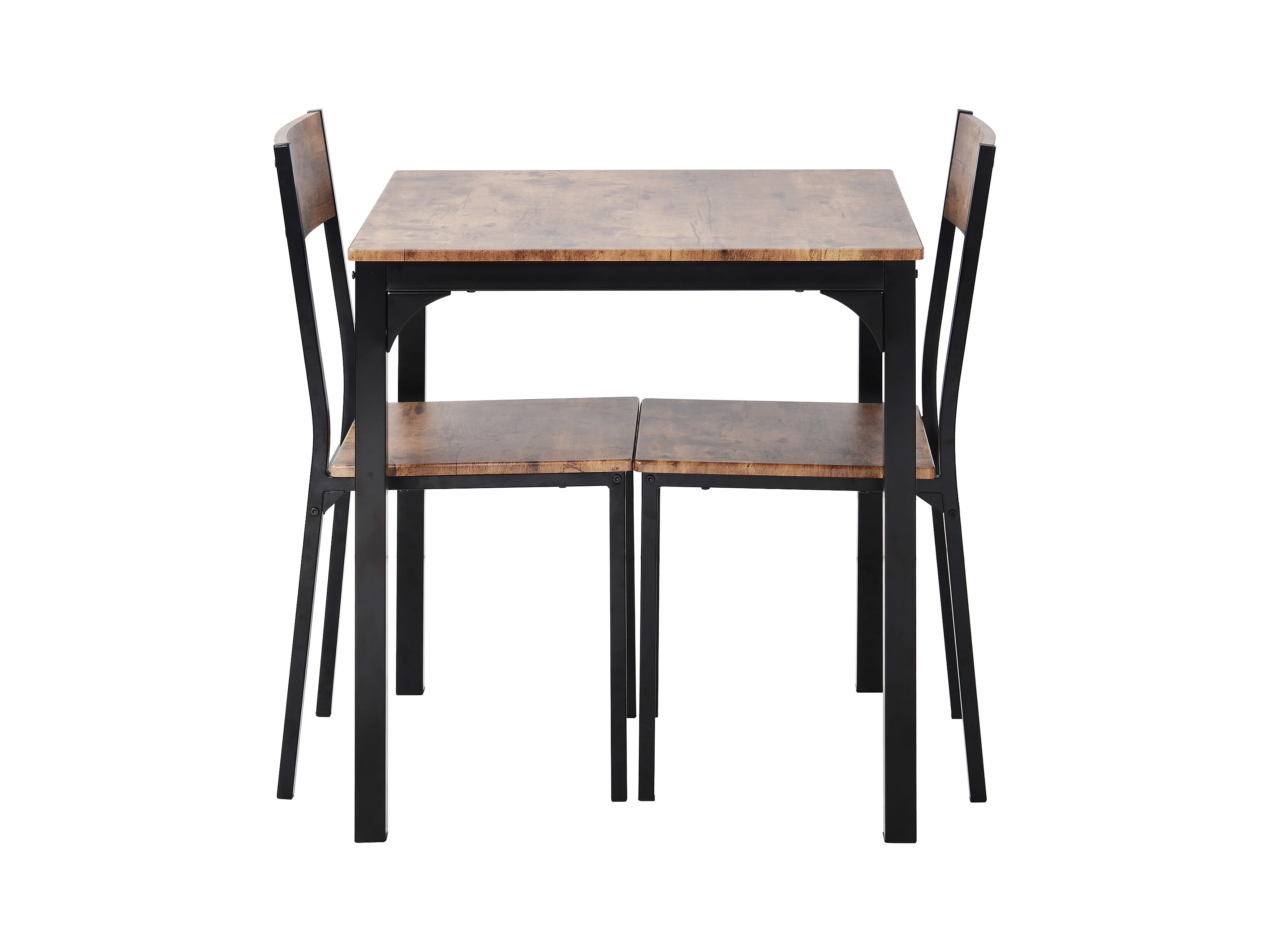 Ensemble table Carré et 2 chaises de salle à manger, cadre en métal, marron