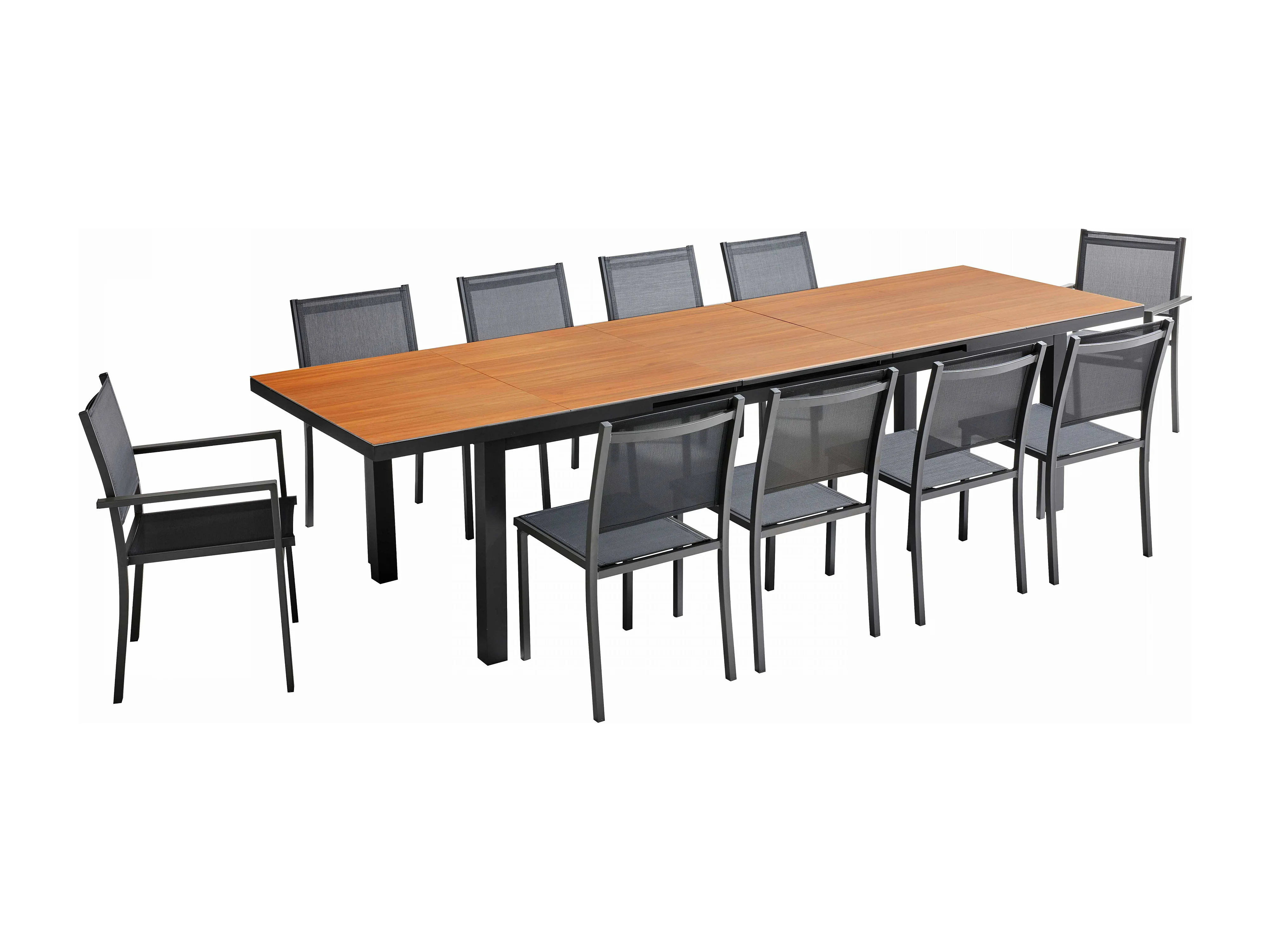 Ensemble table de jardin avec 8 chaises et 2 fauteuils bois