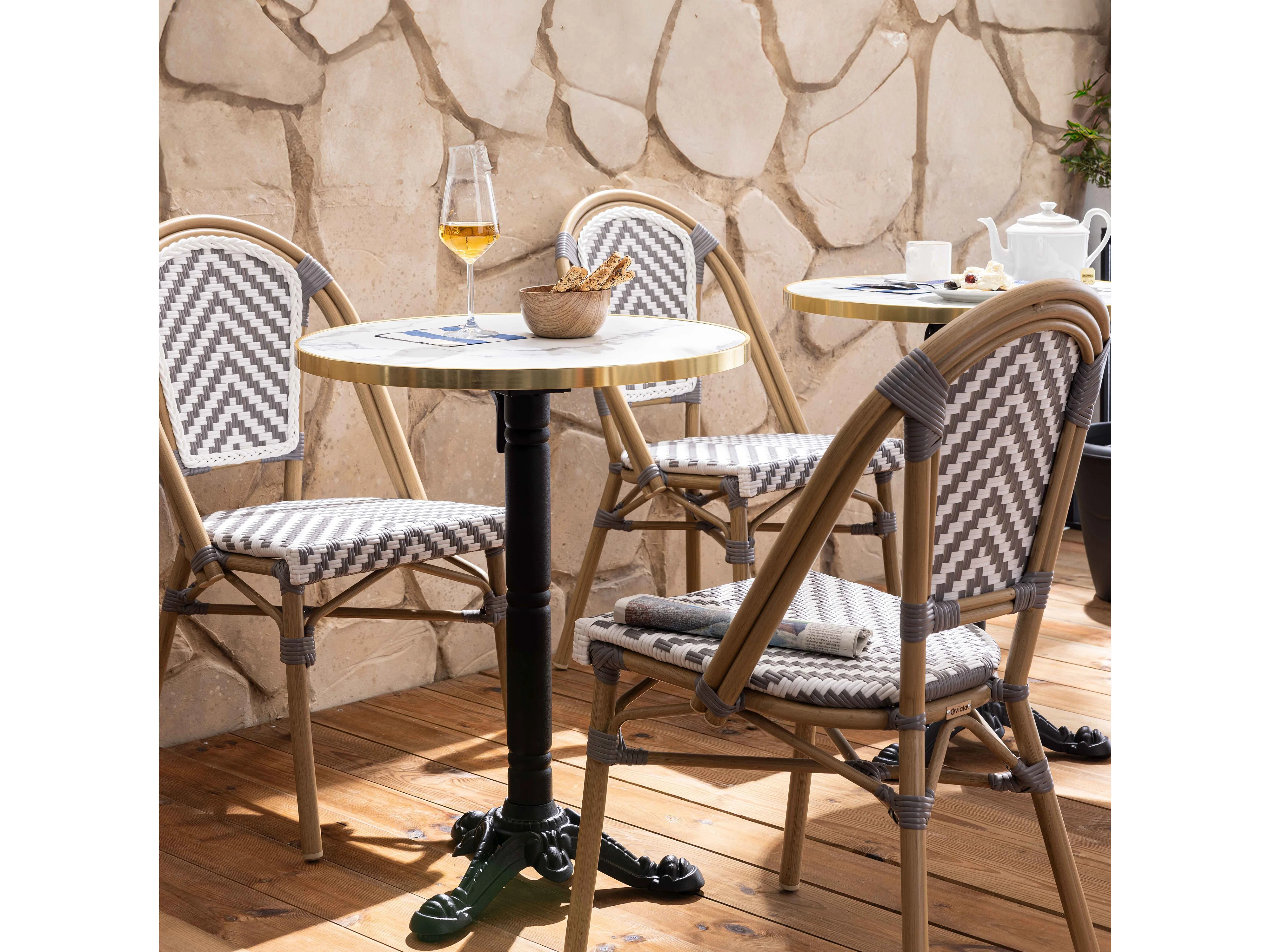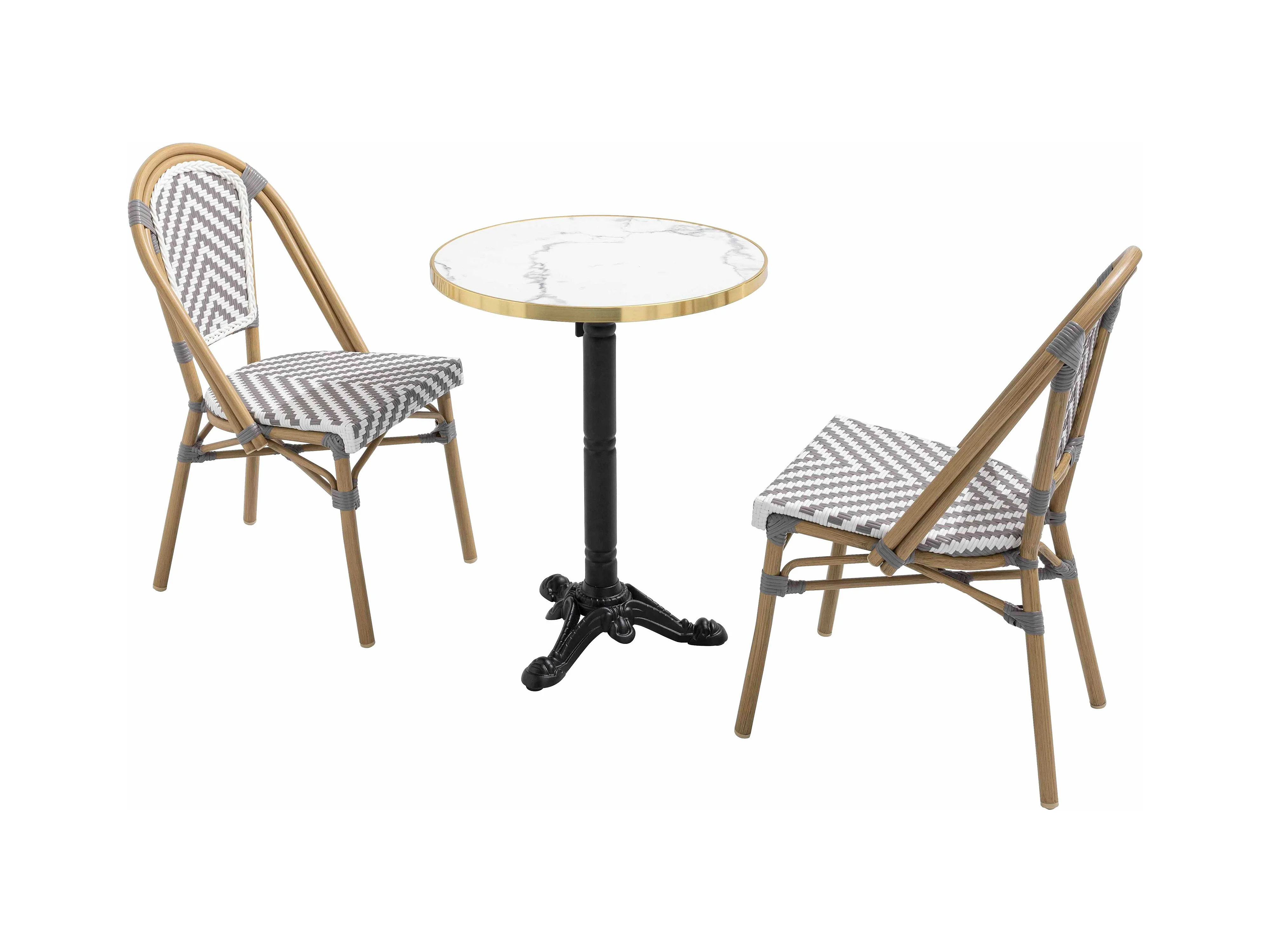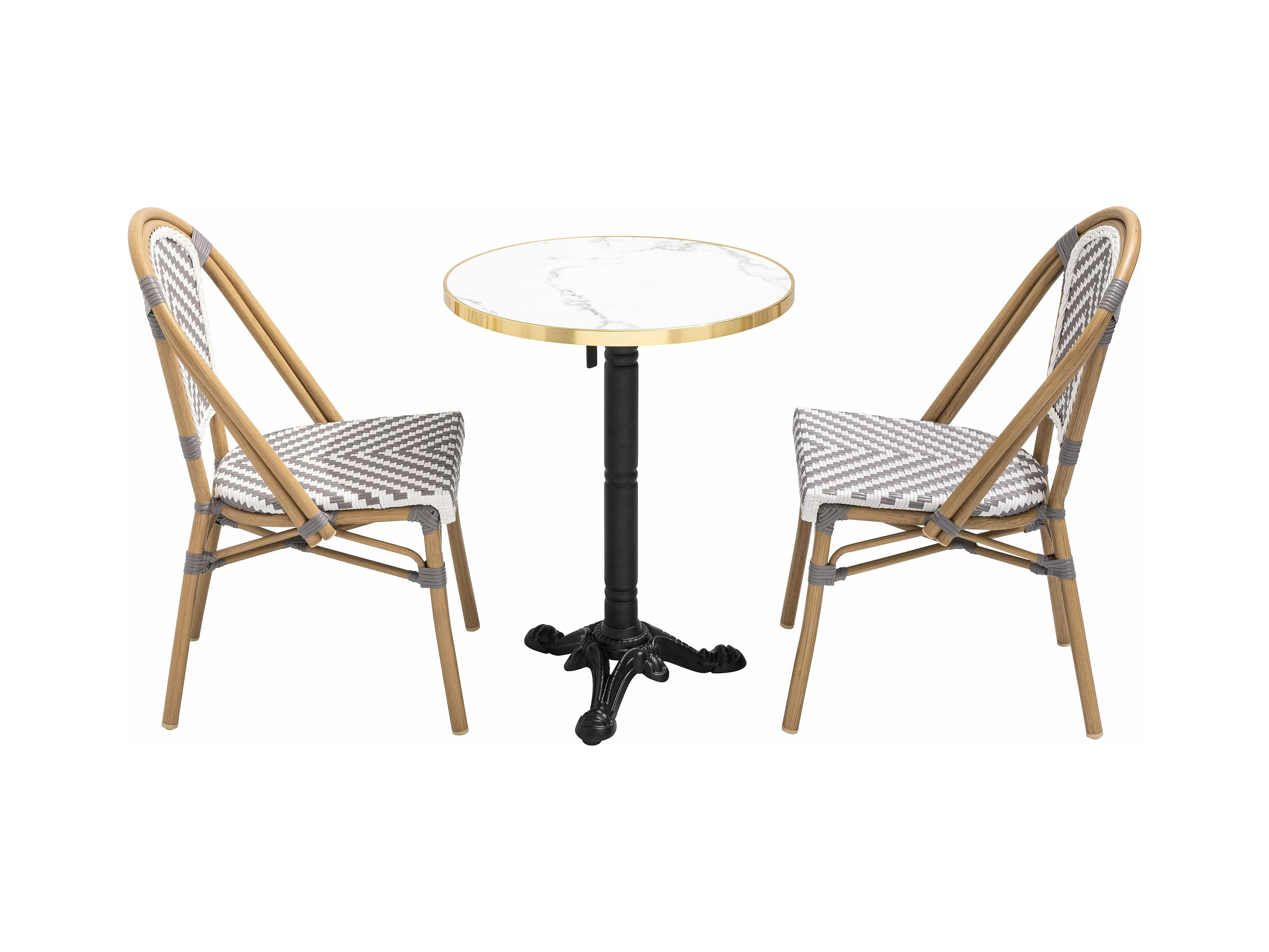 Ensemble table de terrasse marbre blanc et 2 chaises