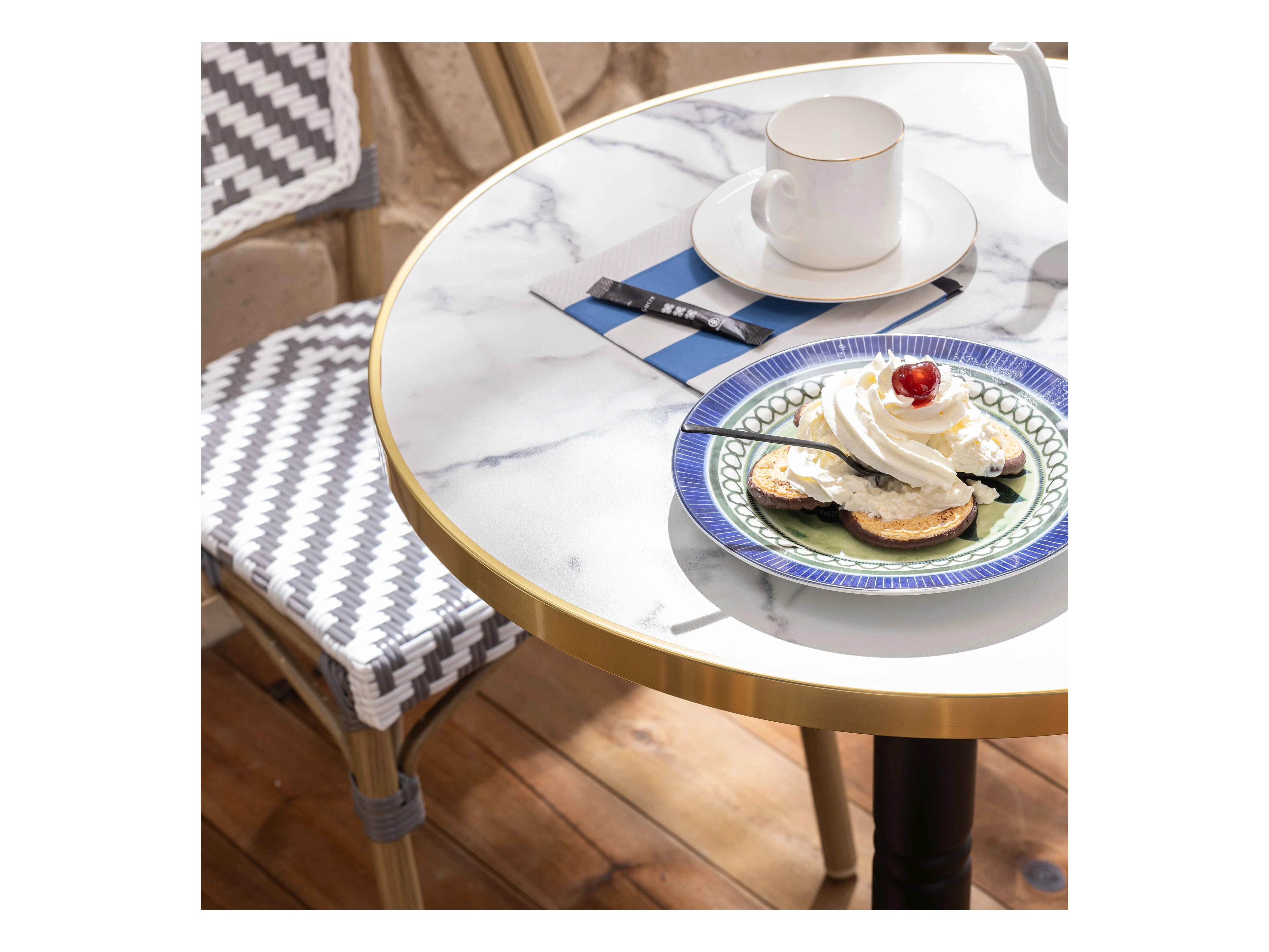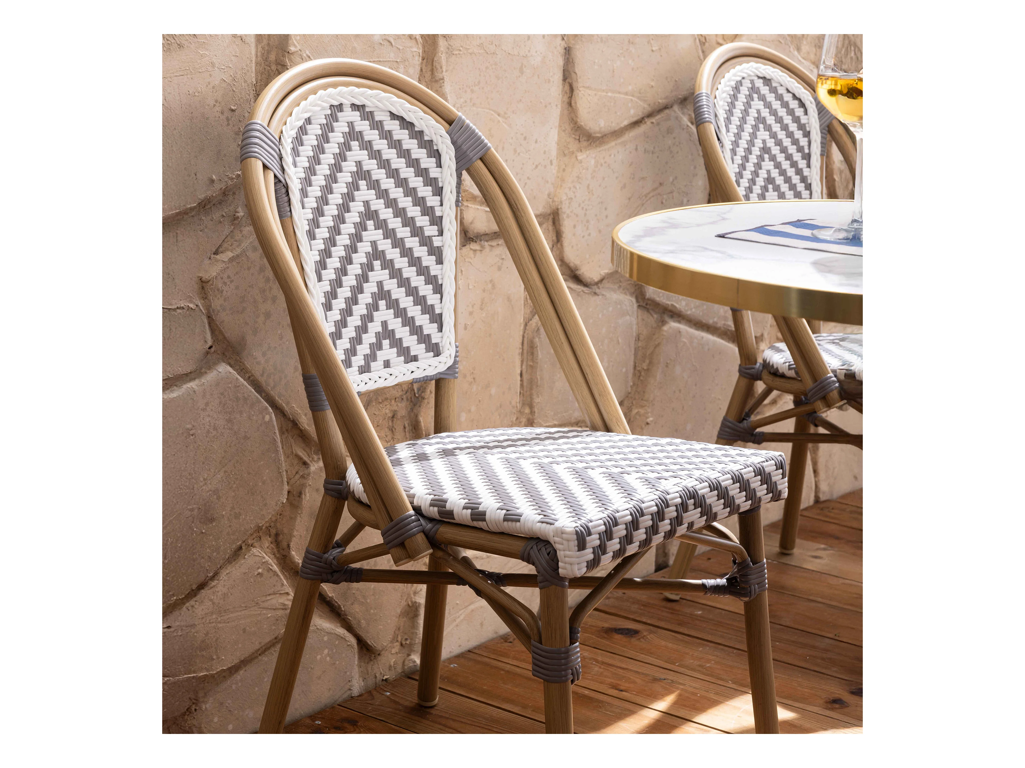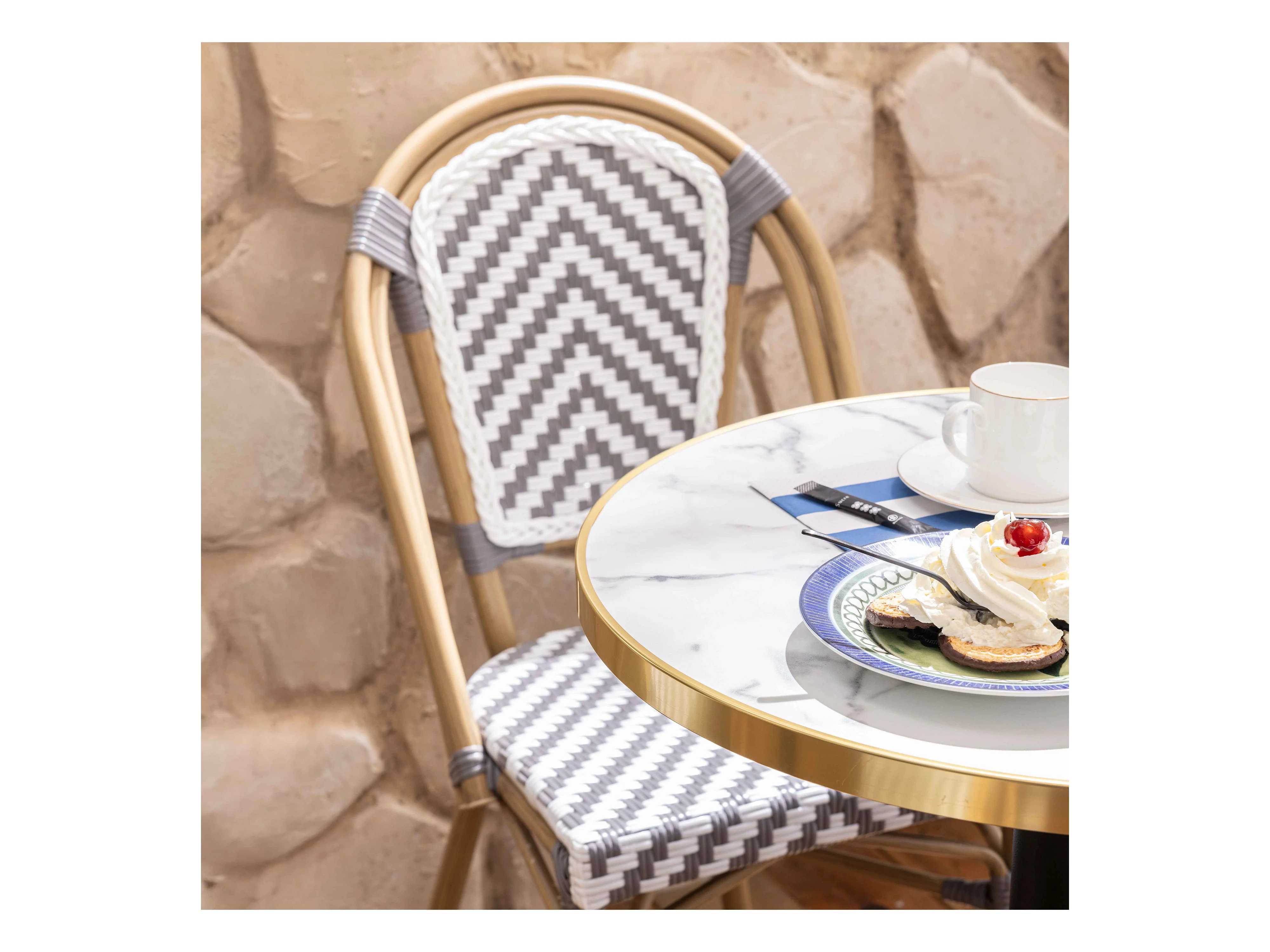 Ensemble table de terrasse marbre blanc et 2 chaises
