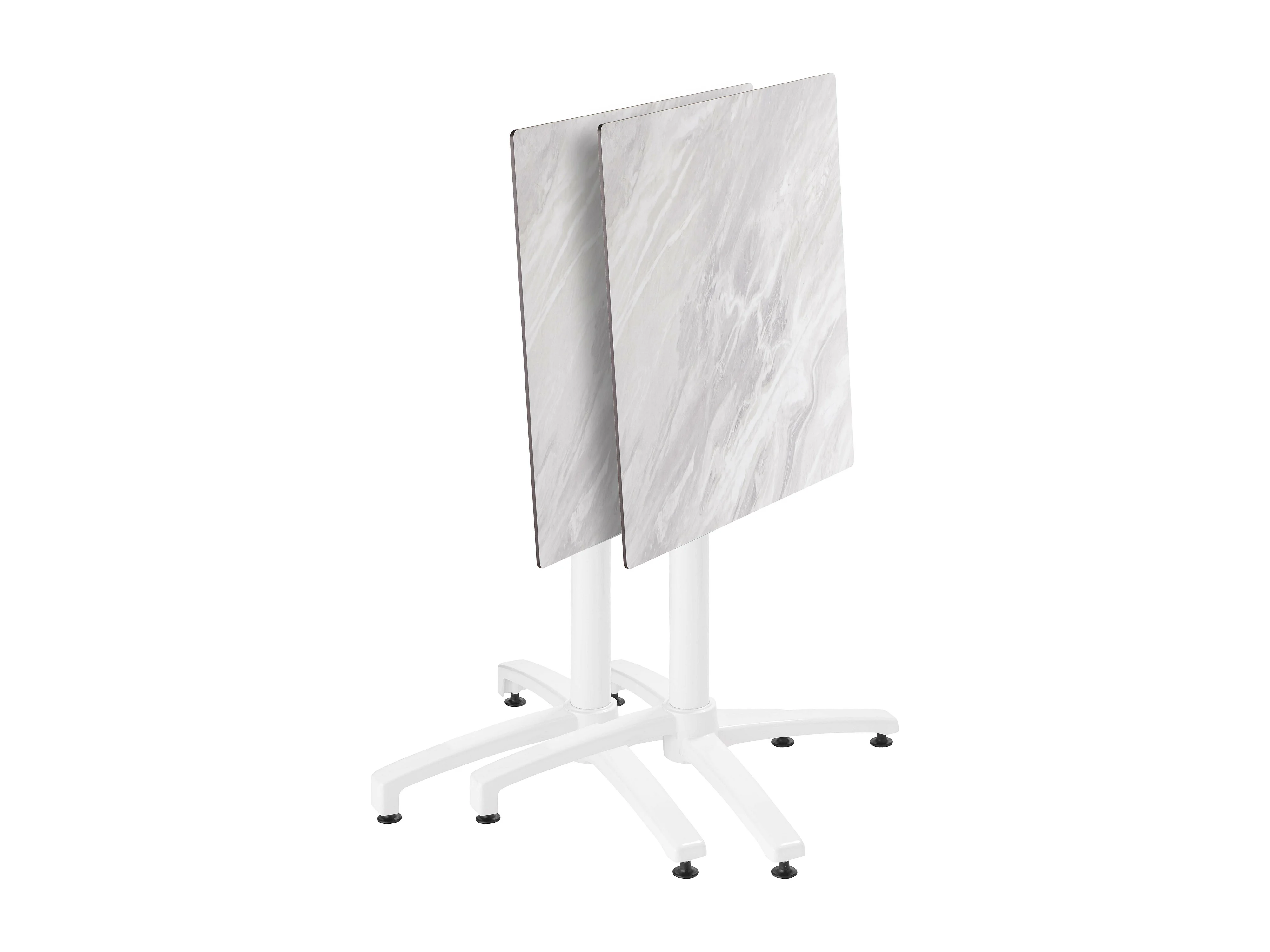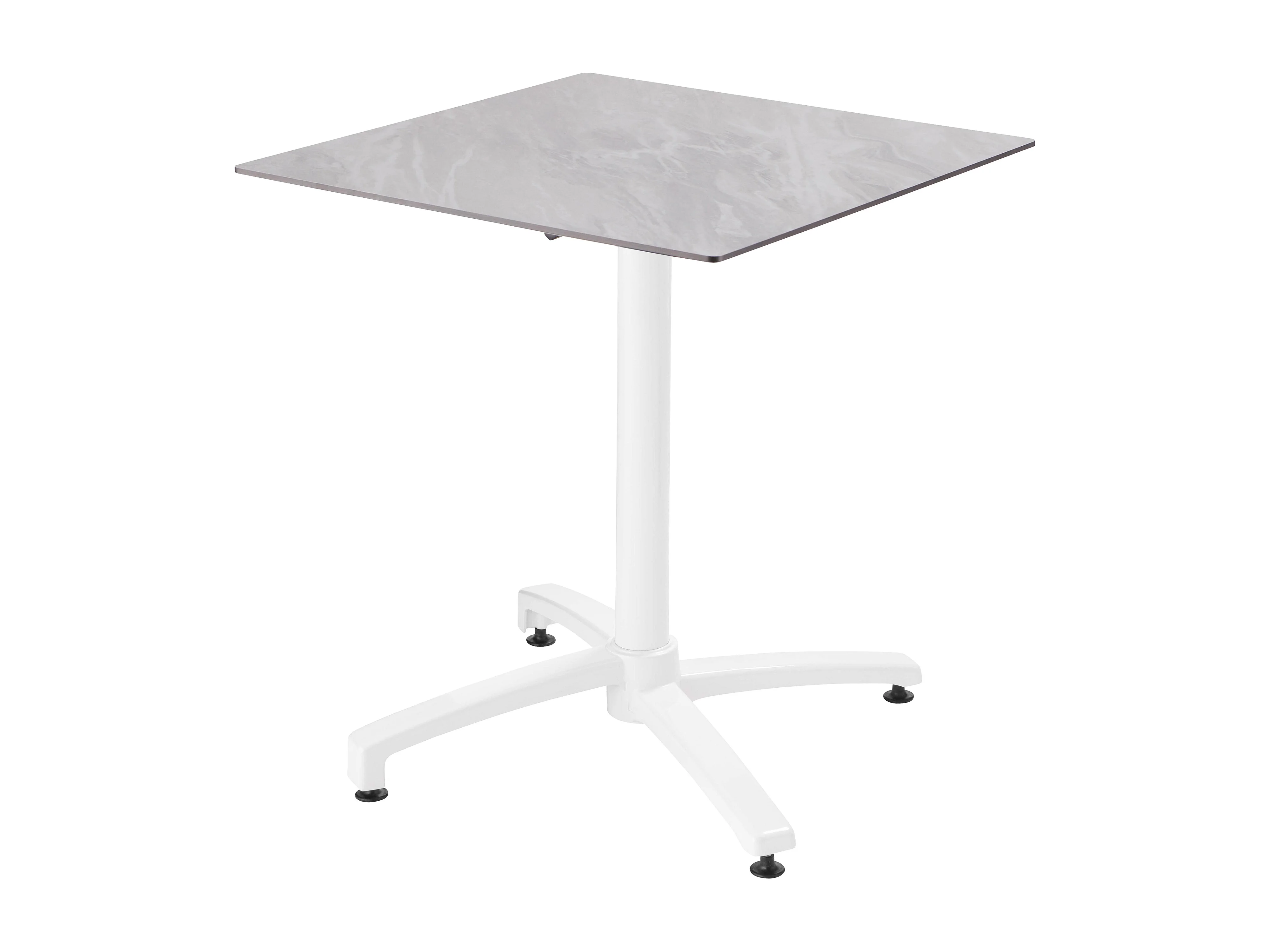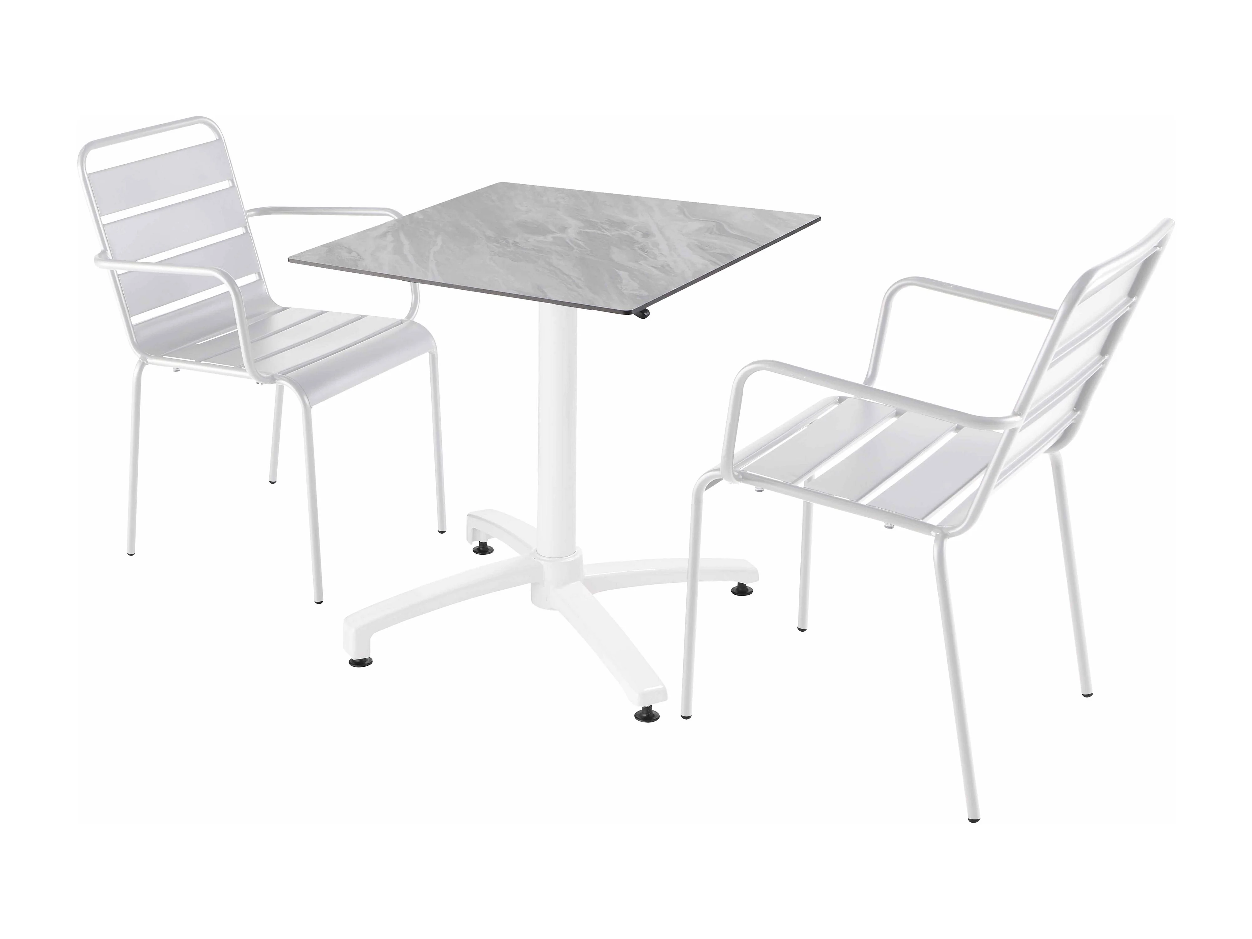 Ensemble table de terrasse stratifié marbre avec 2 fauteuils blanc