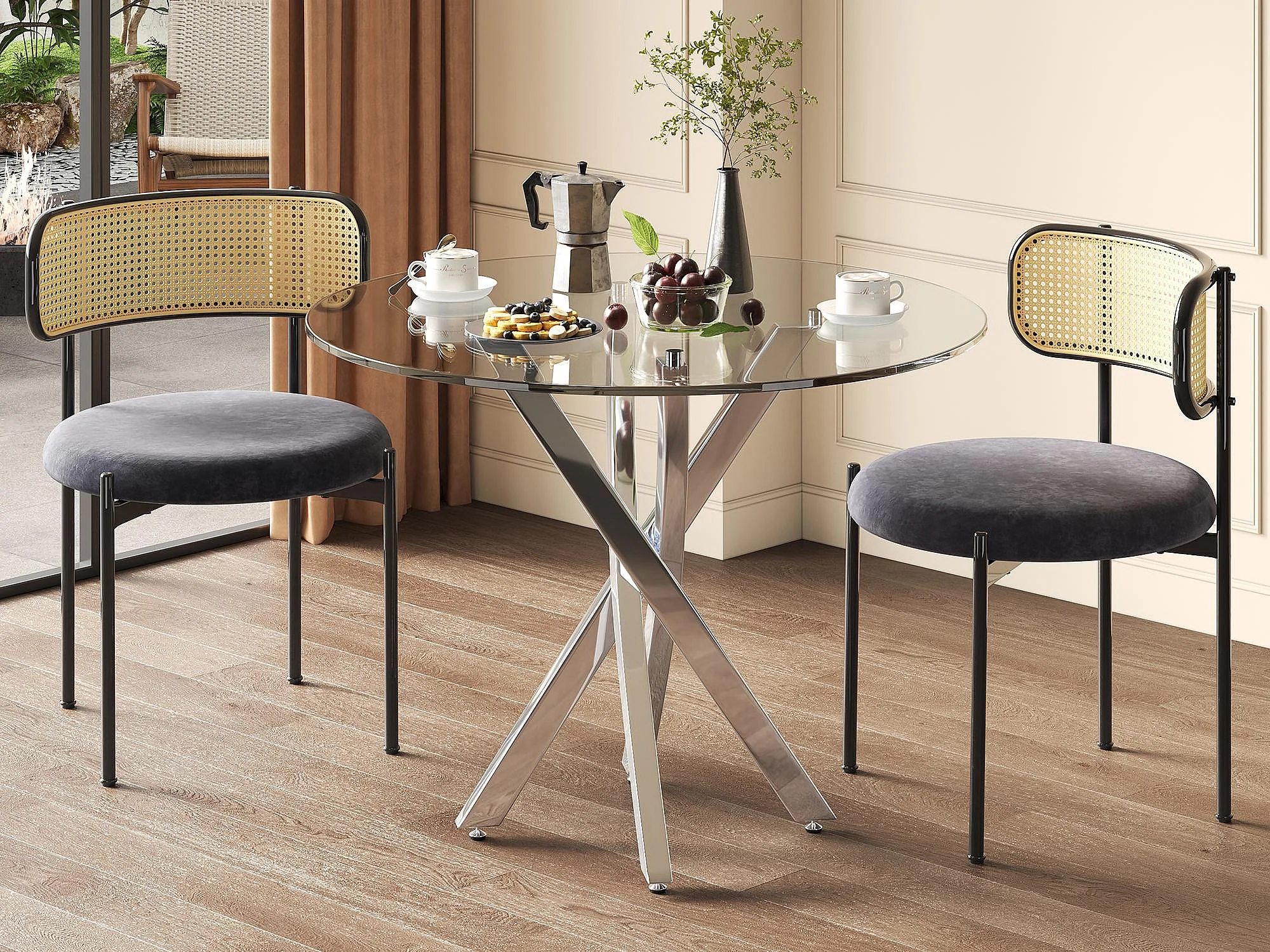 Ensemble table et 2 chaises - table à manger 80x80x75 cm - plateau en verre trempé - argent + gris
