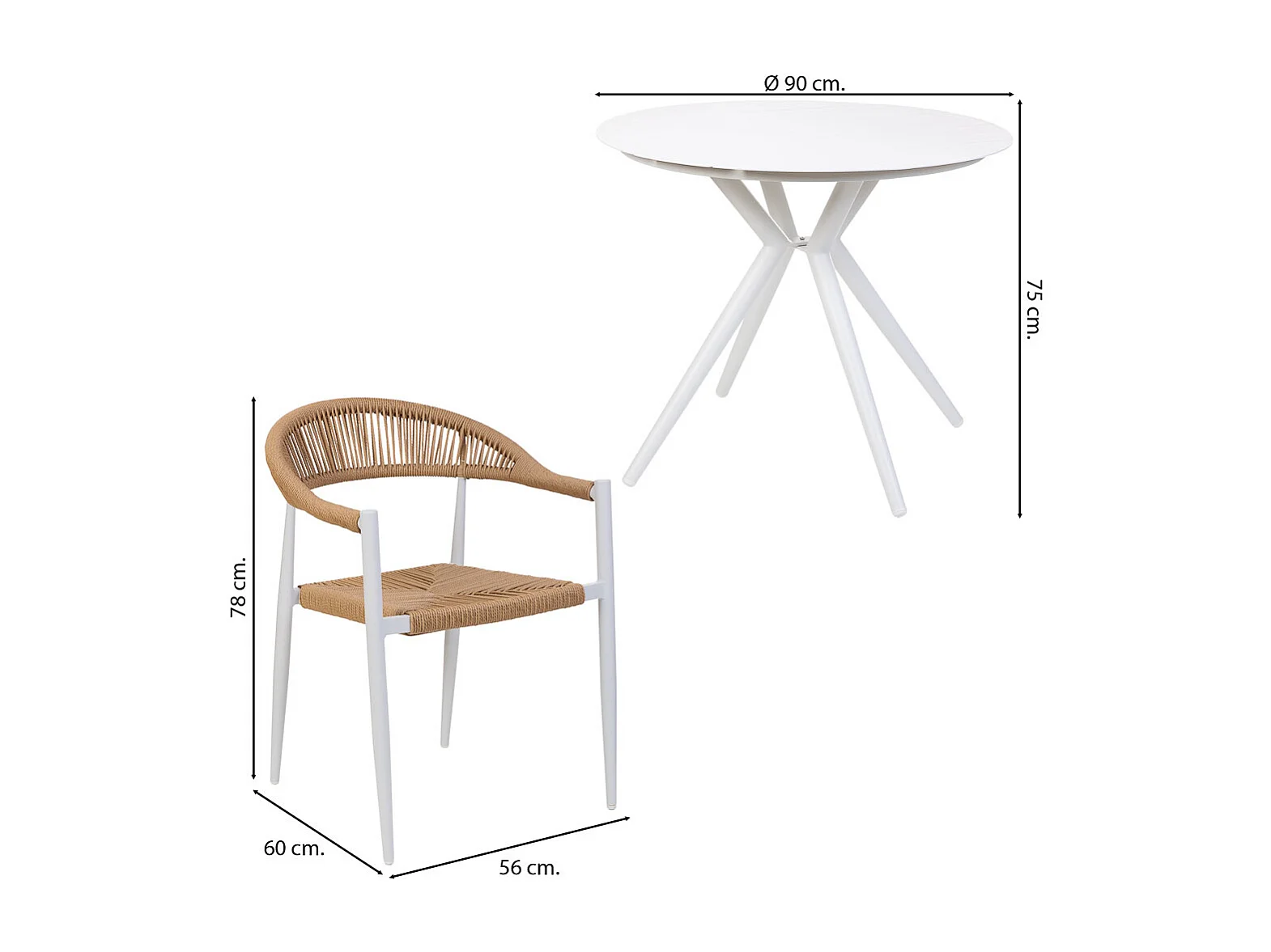 Ensemble table et 4 chaises beige, table: D90x75.chaises(4): 56x60x78