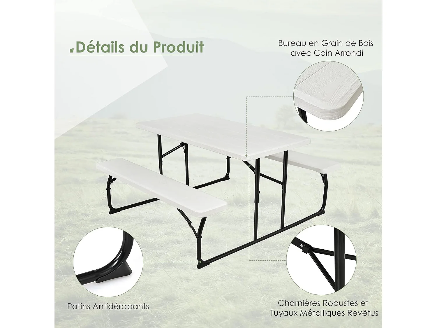 Ensemble Table et Bancs Pliant de Pique-Nique avec Cadre en Métal, Banc Charge 250KG