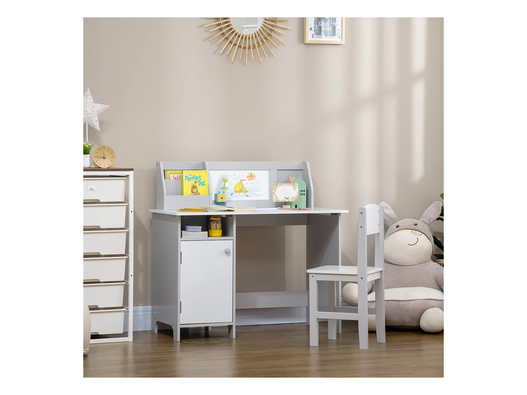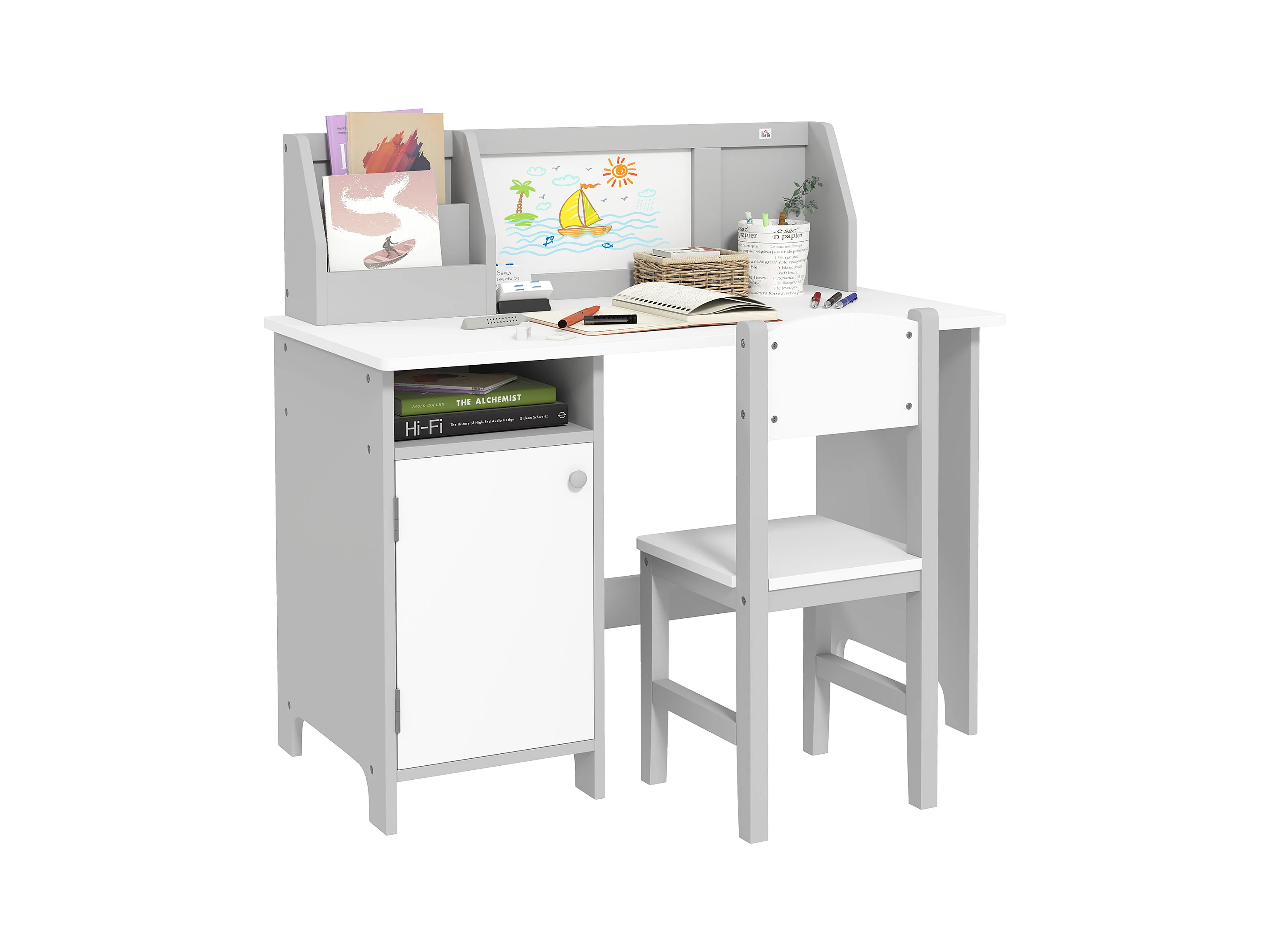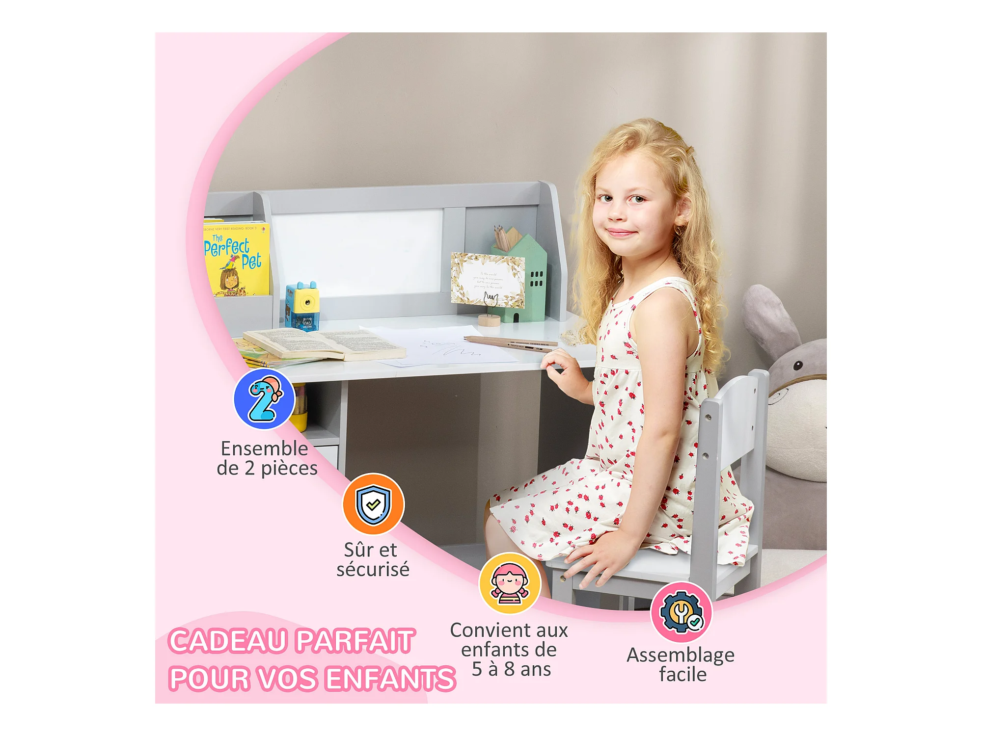 Ensemble table et chaise pour enfant gris avec tableau blanc - bureau pour enfant +5 ans - 90L x 45l x 85H cm