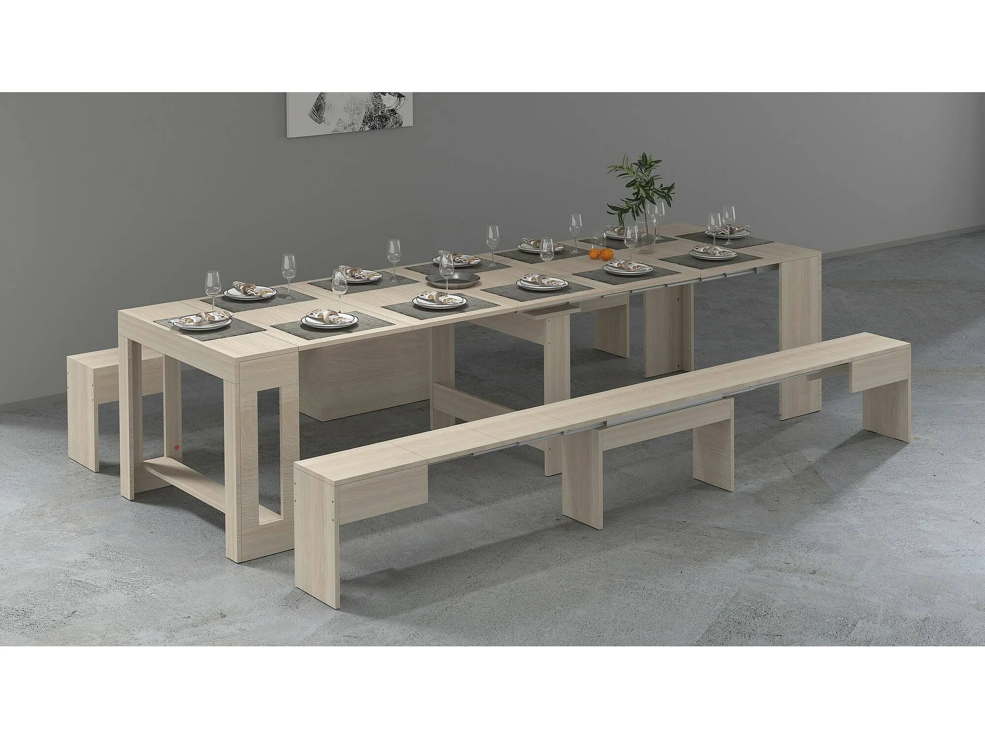 Ensemble table et chaises Dadamoni, Composition polyvalente, Ensemble avec console et 2 bancs extensibles, 100% Made in Italy, 66x25h45 cm, Olmo