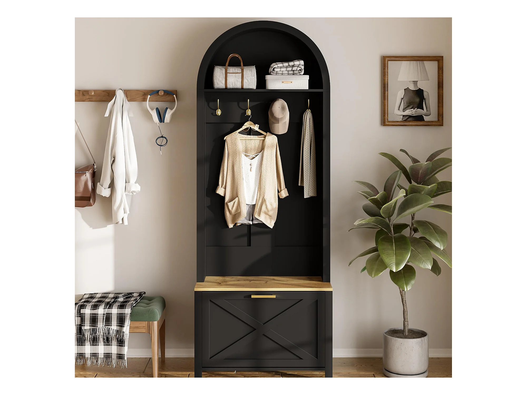 Vestiaire d'entrée avec porte-manteau et banc de rangement à chaussures - 120x40x190 cm - Noir