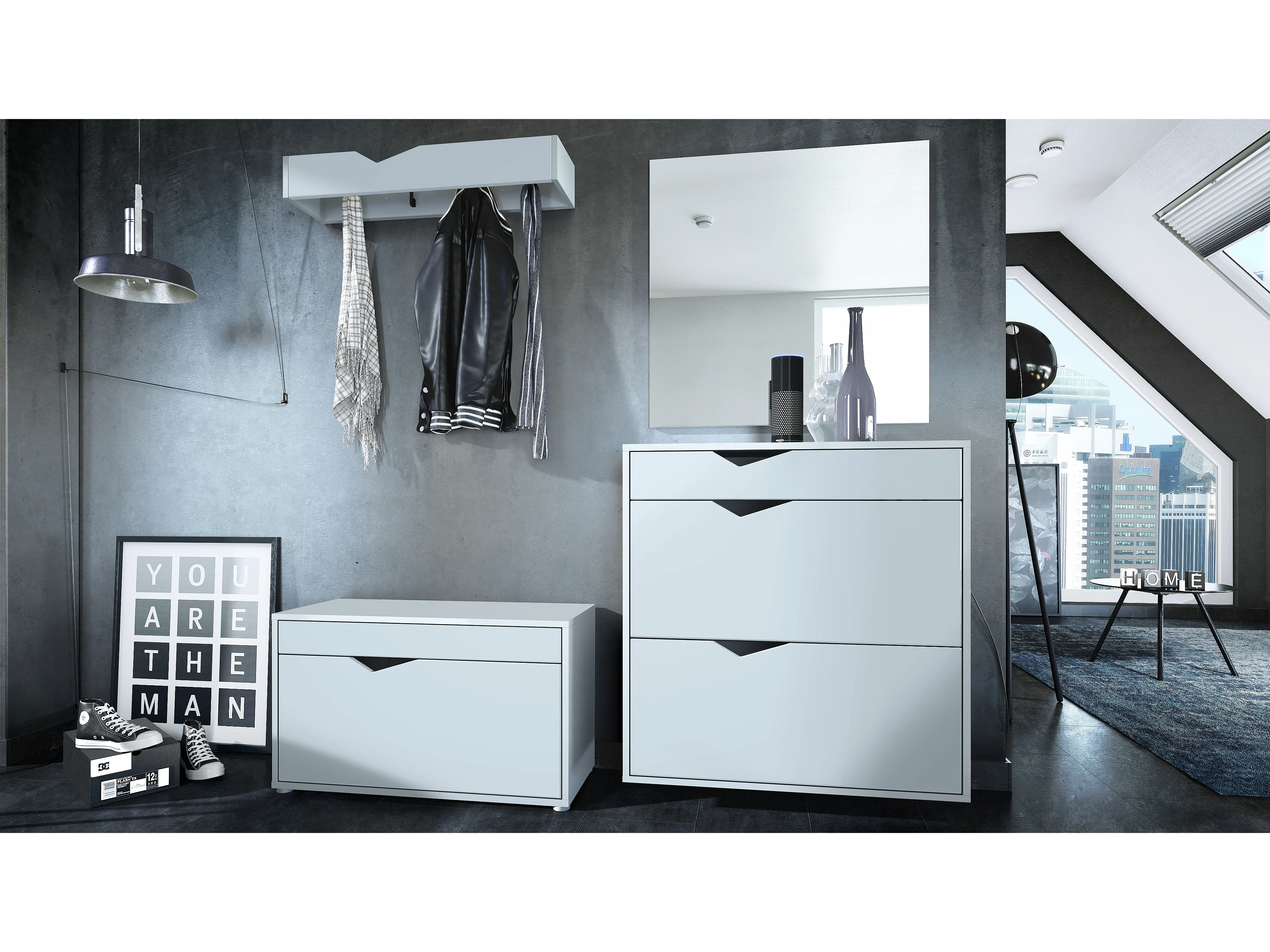 Ensemble Vestiaire Kolmio 190 x 185 x 33 cm portemanteau de couloir, caisson en blanc mat, façades en Blanc mat | Grand choix de couleurs