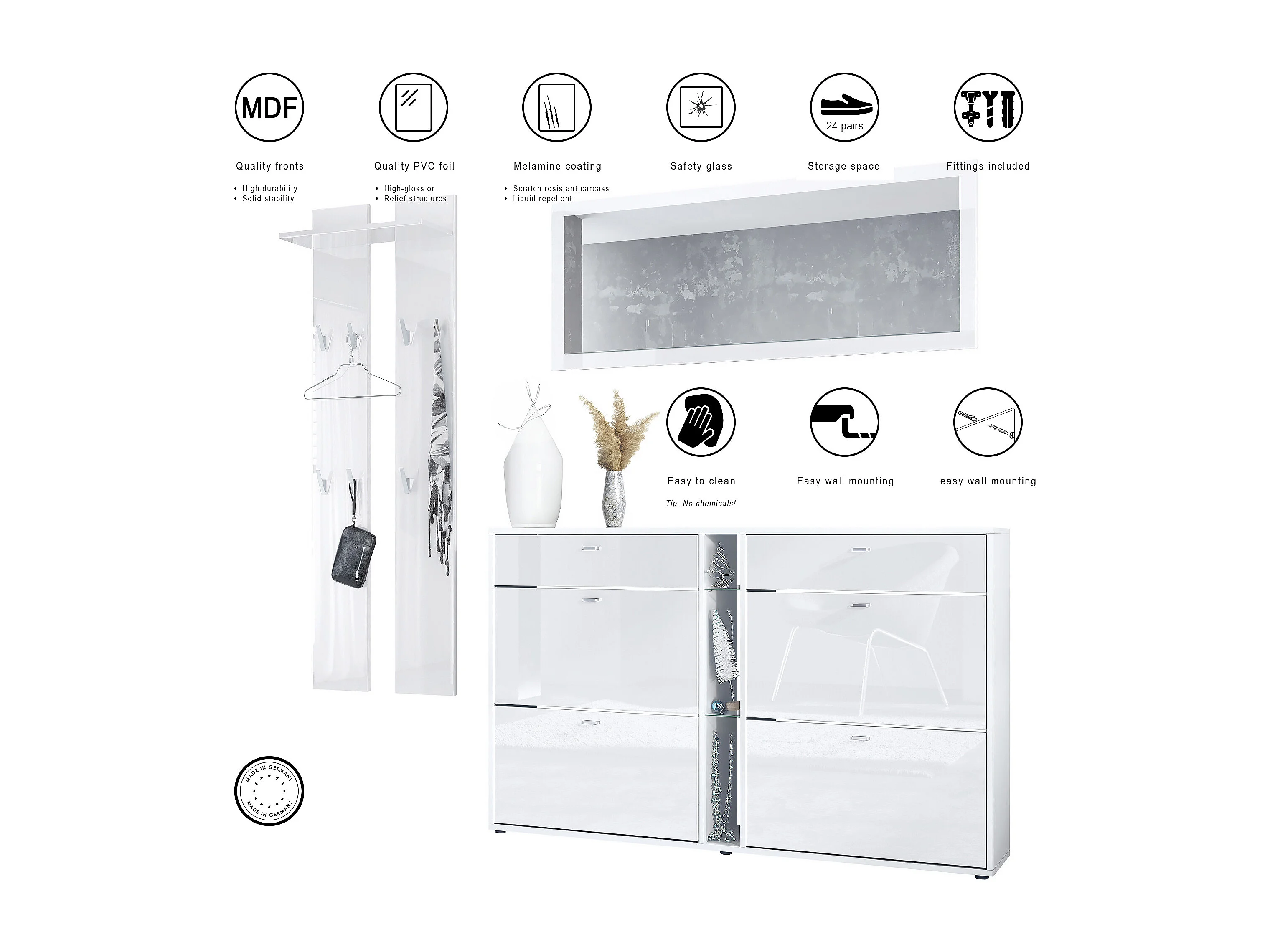 Ensemble vestiaire Orlando avec armoire à chaussures, panneau mural et miroir mural, blanc mat/chêne nature
