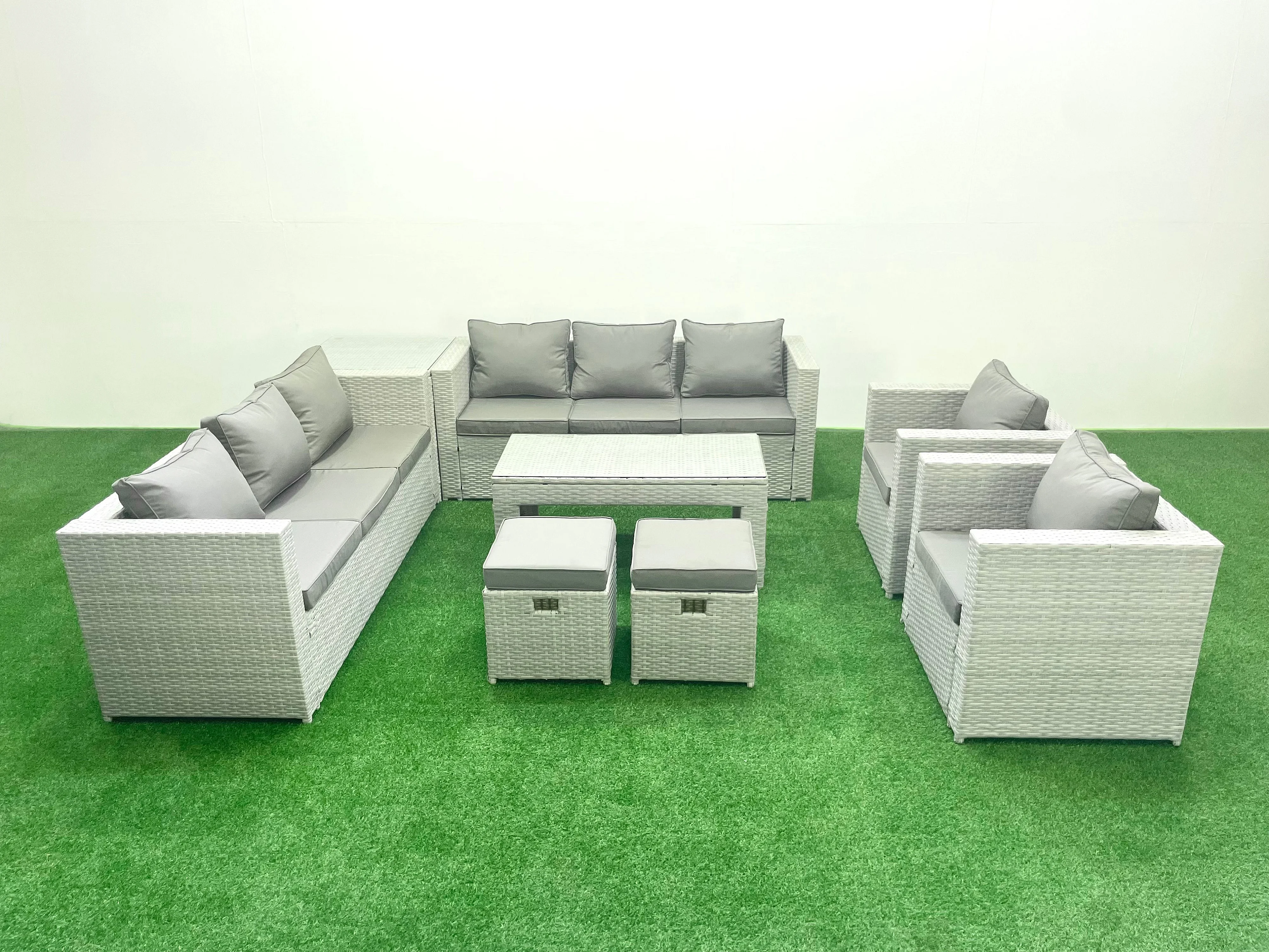 Ensembles de meubles d'extérieur avec 2 Fauteuil Table basse oblongue 2 Petits tabourets Table d'appoint Gris clair mixte