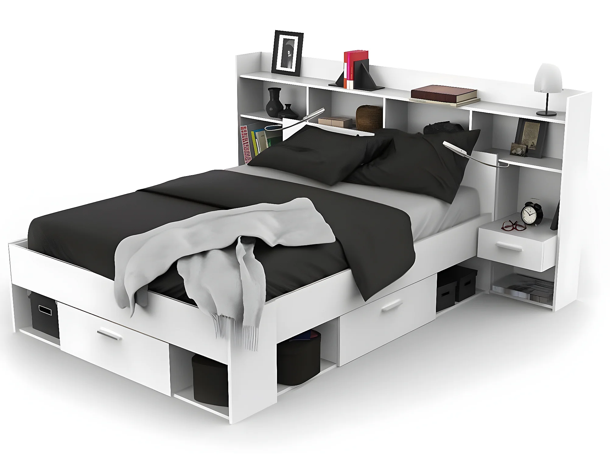 Environnement de lit coloris blanc mat - 221,8 x 108,5 x 37,6 cm