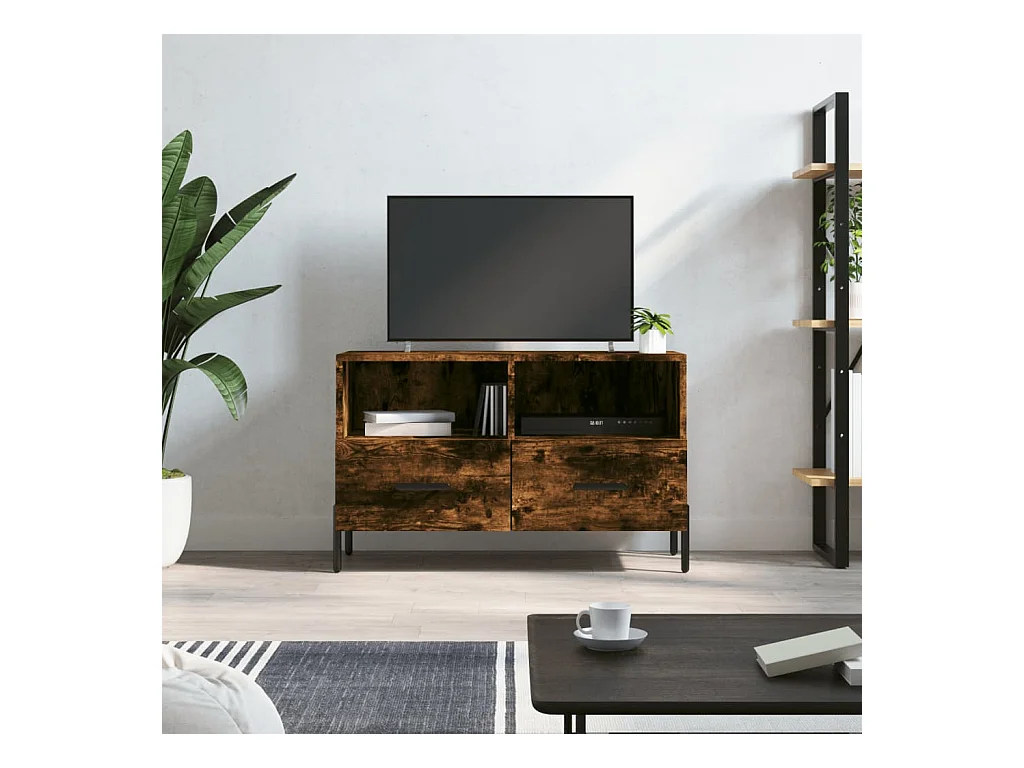 Évreux Meuble TV chêne fumé 102x36x50 cm bois d'ingénierie