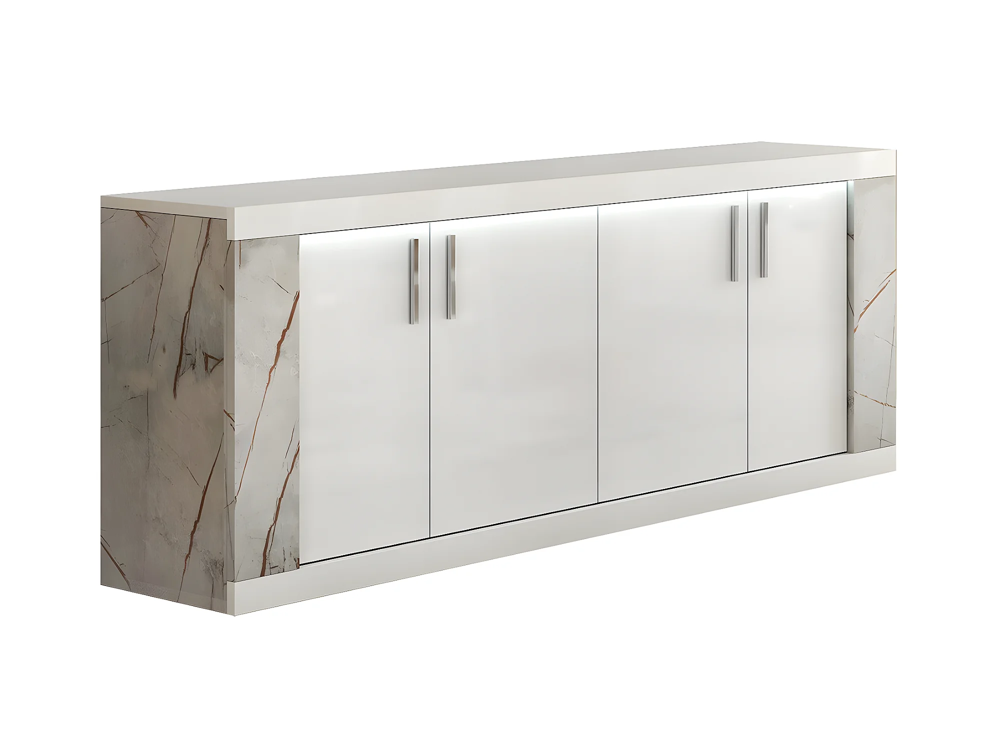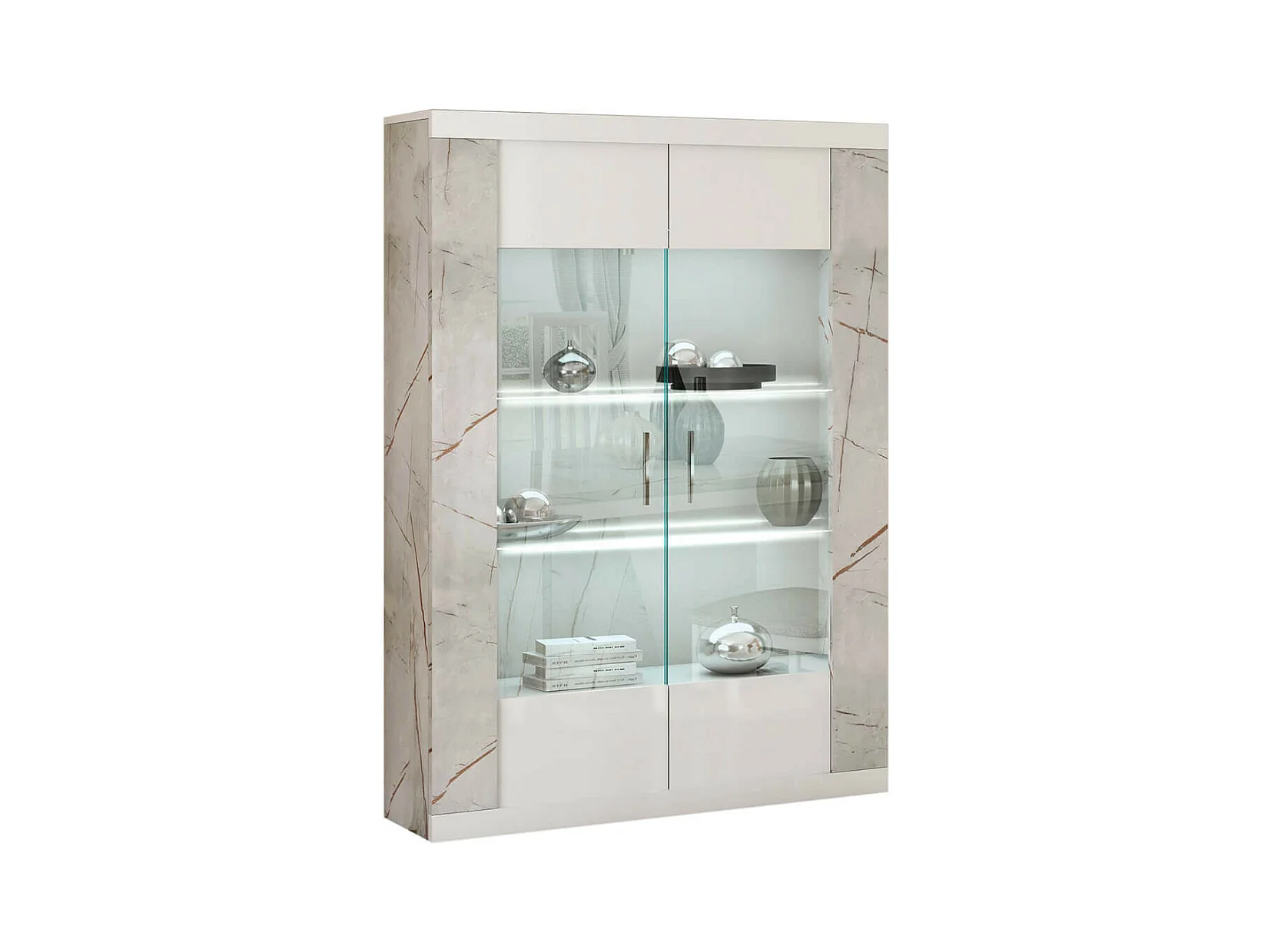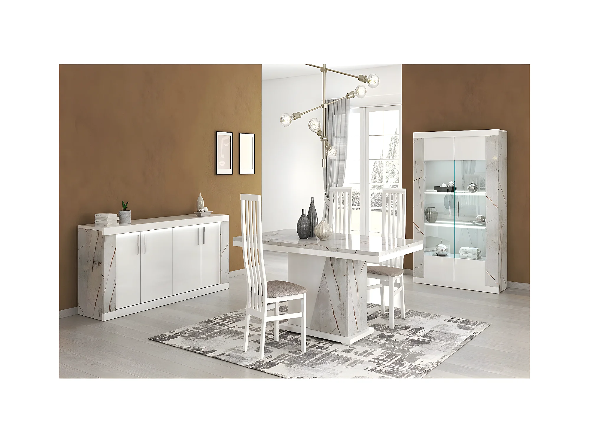 EROS - Séjour Complet Table Repas + Buffet + Vitrine 2 Portes Eclairage Led intégré