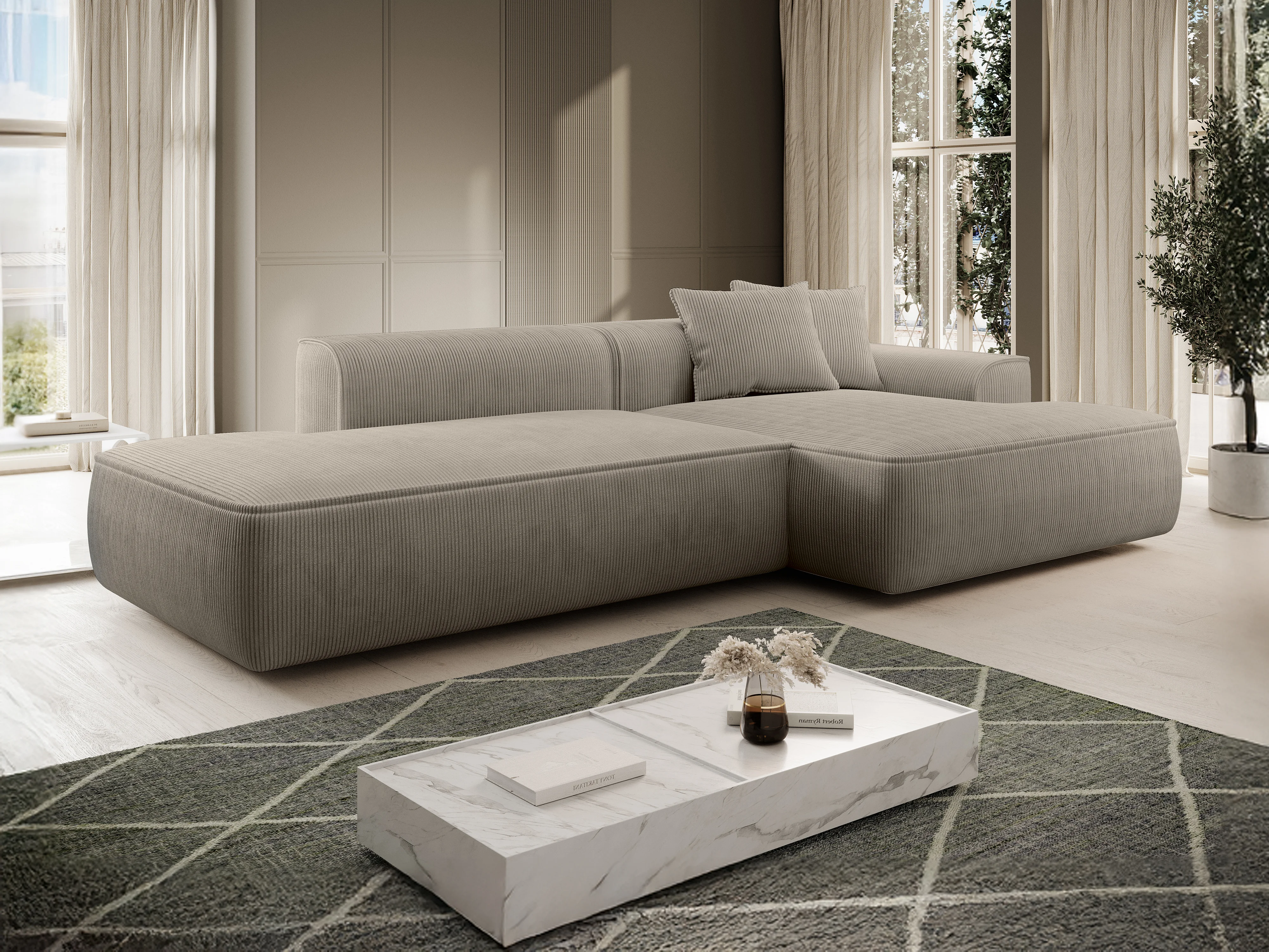 Canapé d'angle droit en velours côtelé taupe ERYNEL