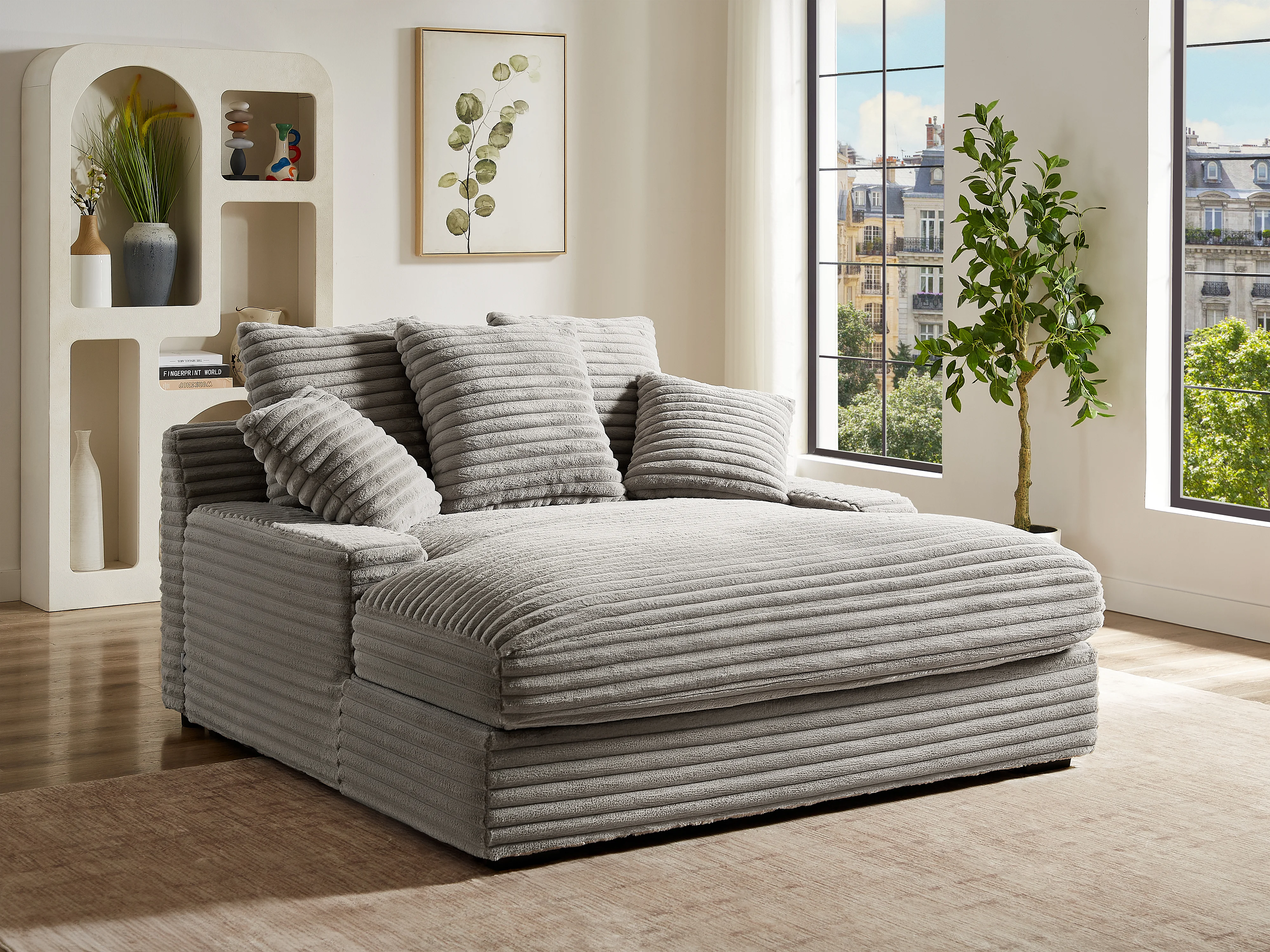 Méridienne 2 places en velours côtelé grosses côtes gris ESARTO de Pascal Morabito