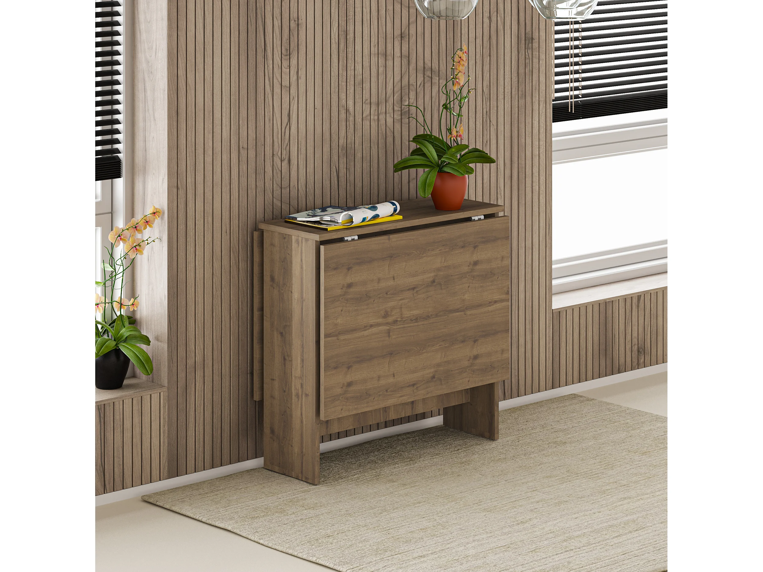 Decortie Chêne Foncé 76x130x73.4cm Table à manger pliante pour 4 personnes, panneau de particules, rectangulaire, Artemio