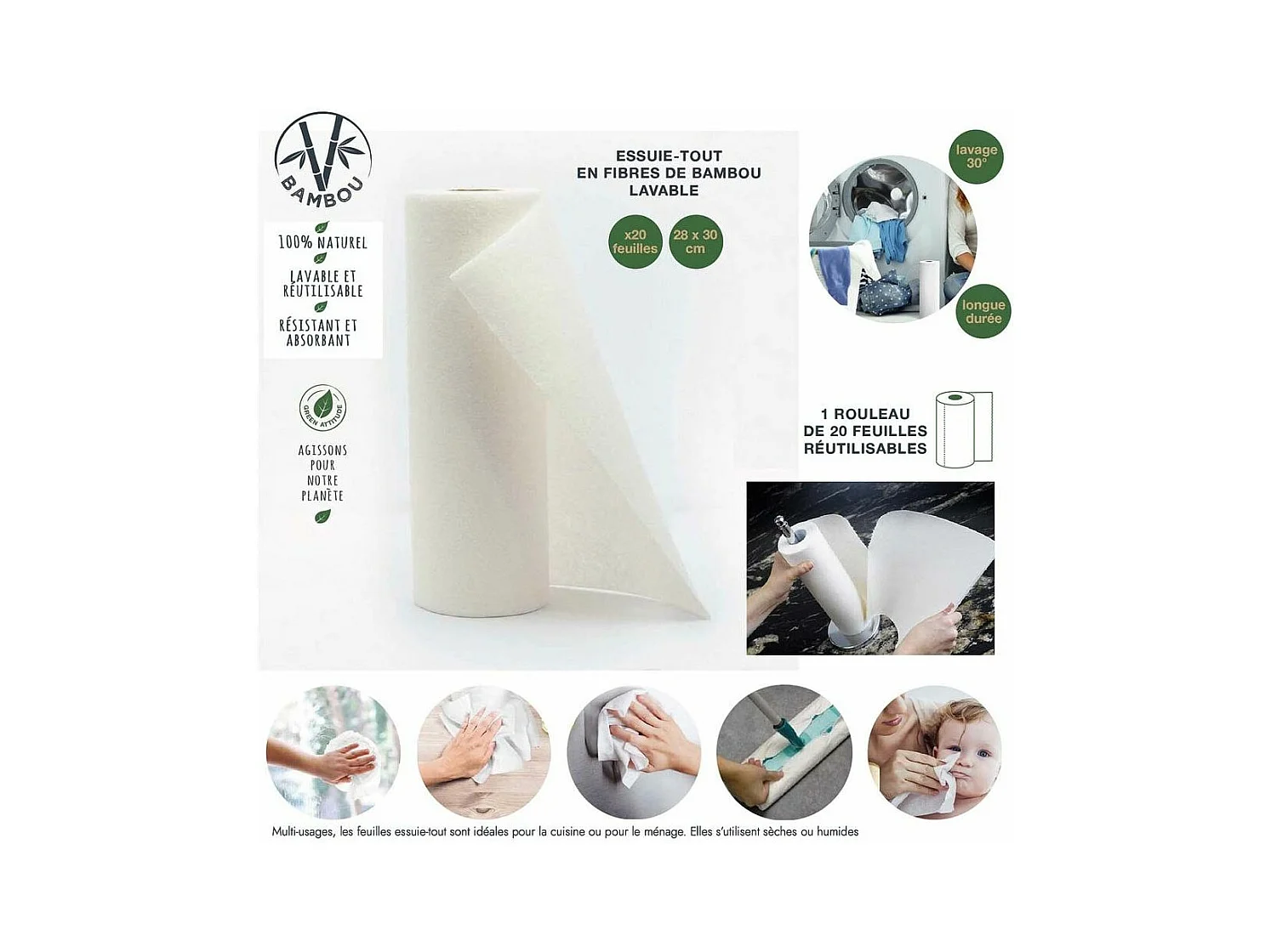Essuie-tout réutilisable Eco concept Lot de 3