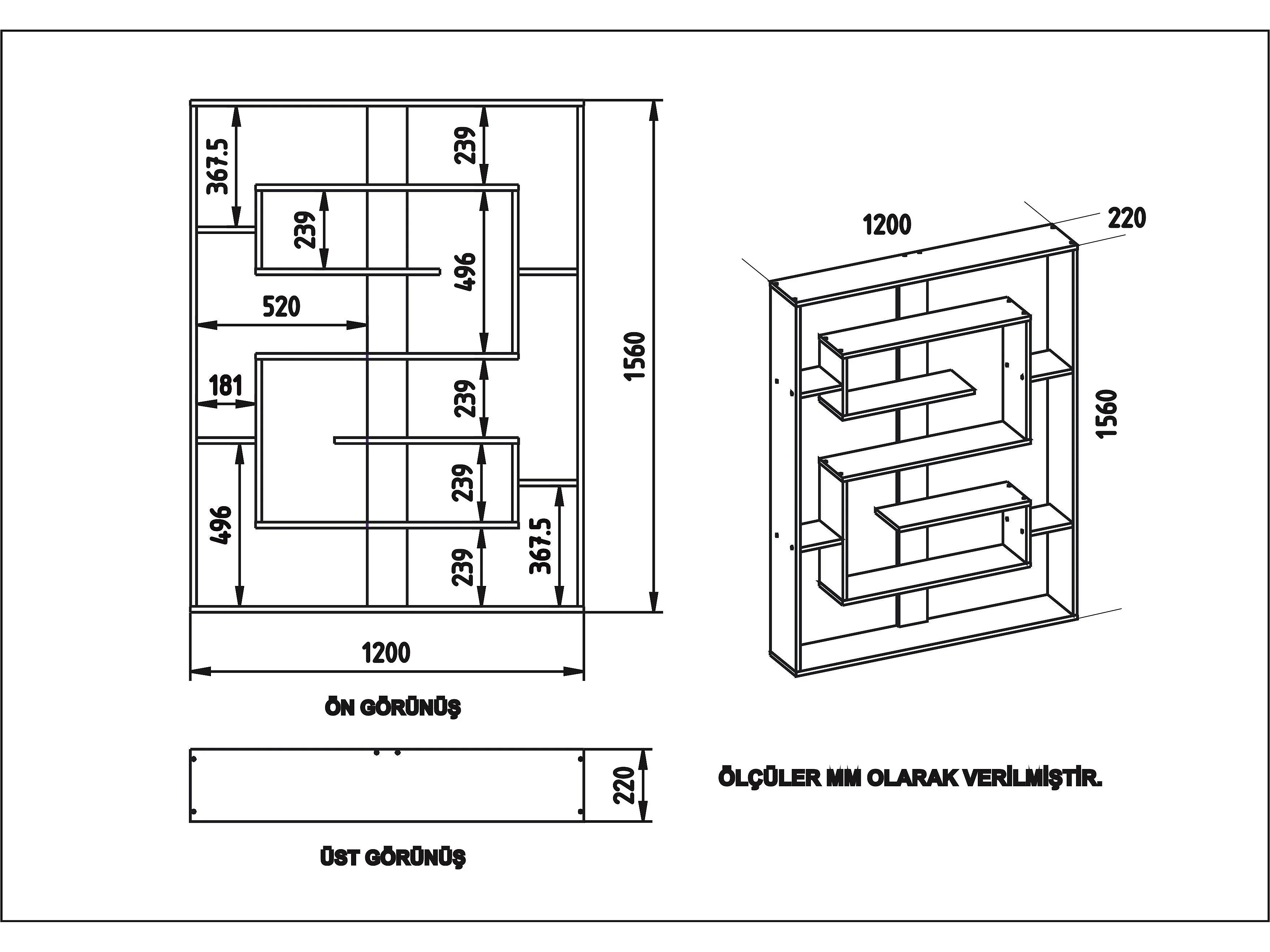 Esteban Bibliothèque Design Géométrique de 156 cm Hauteur (Blanc)