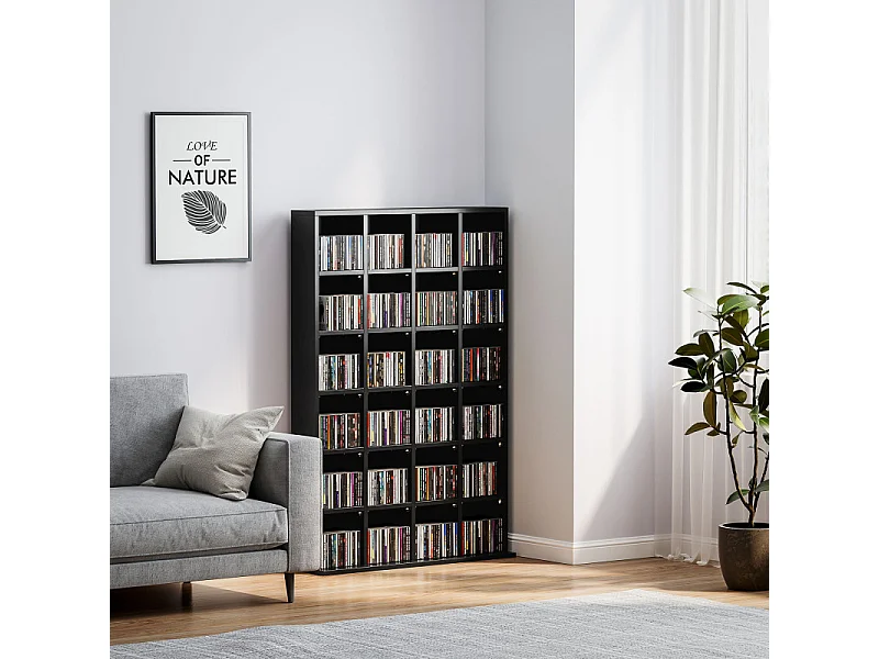 Bibliothèque étagère de rangement à 7 niveaux style industriel acier bois noir