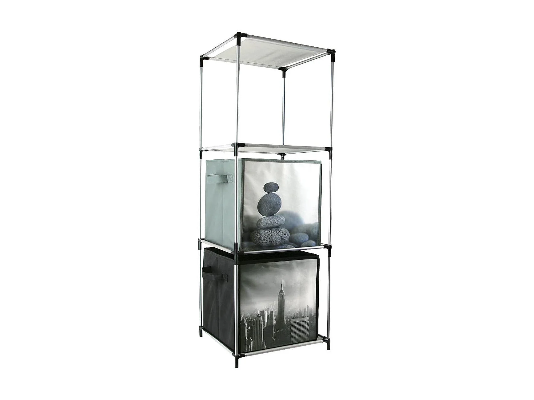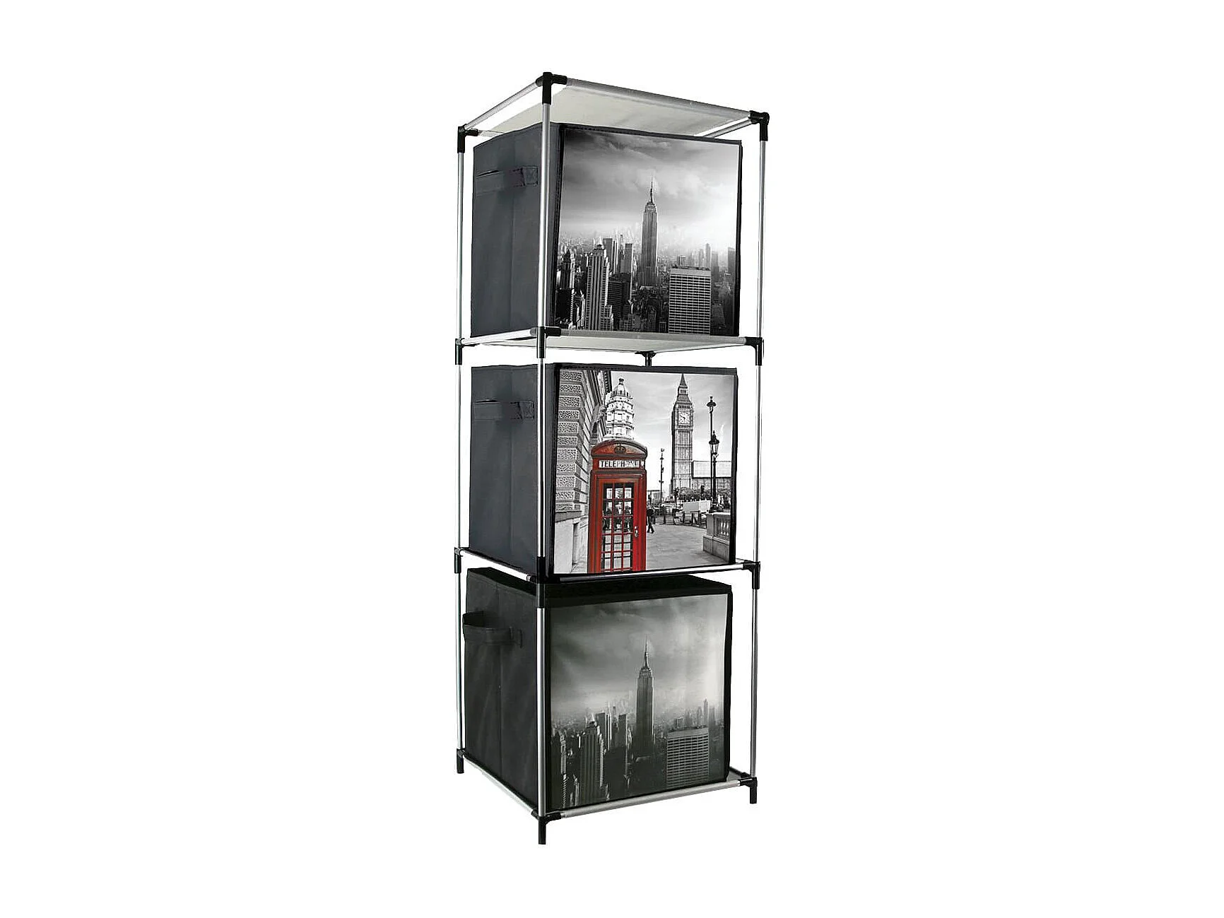 Etagère 3 Casiers Légère en Métal et Tissu Gris H102cm - GAROS