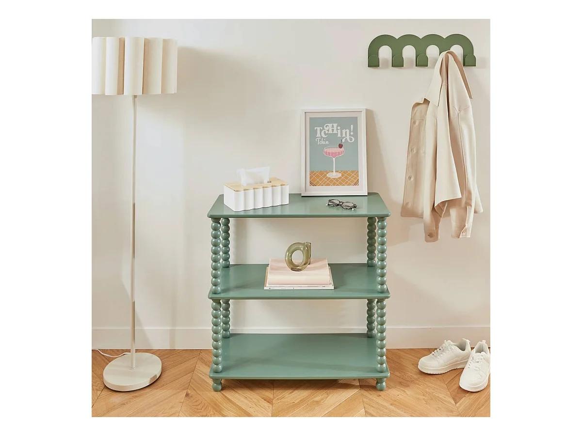 Etagère 3 niveaux avec pieds torsadés coloris vert - Longueur 75 x largeur 34 x Hauteur 75 cm