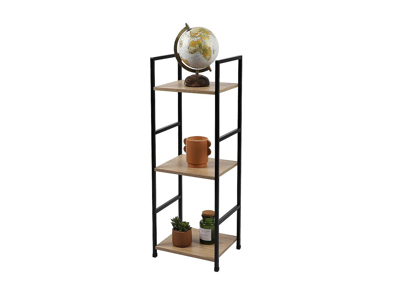 Étagère pyramide 3 niveaux DARYL – Style industriel – Chêne et noir