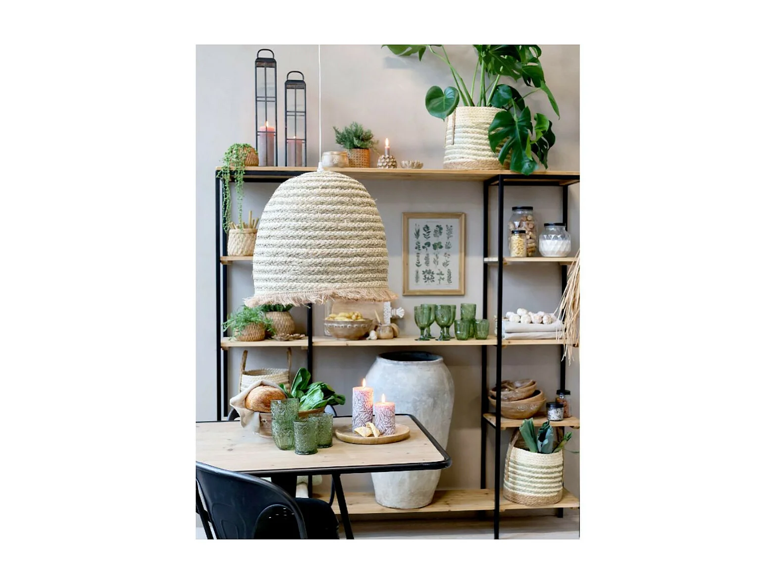 Etagère 6 étages en bois de sapin marron et fer noir 180 x 35 x 183 cm