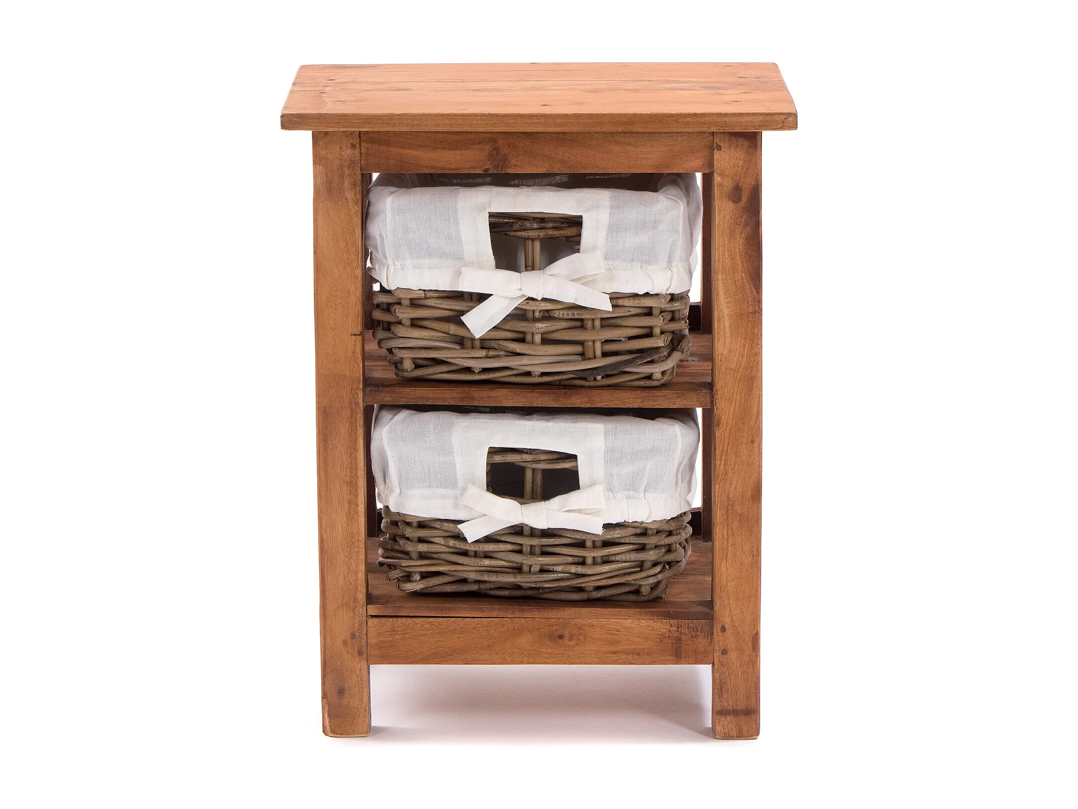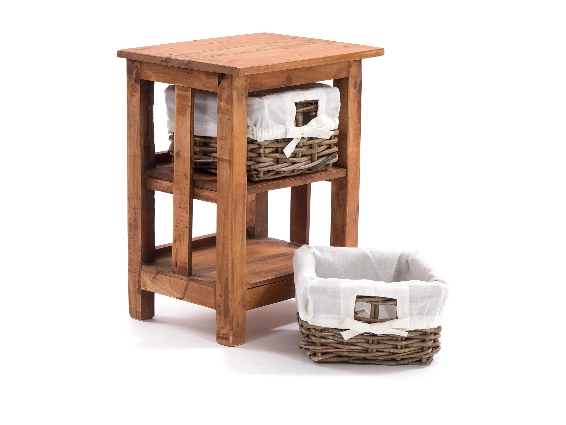 ÉTAGÈRE À BADIGEONNER flair avec 2 paniers en rotin, bois recyclé massif 08 honigfarben gewachst