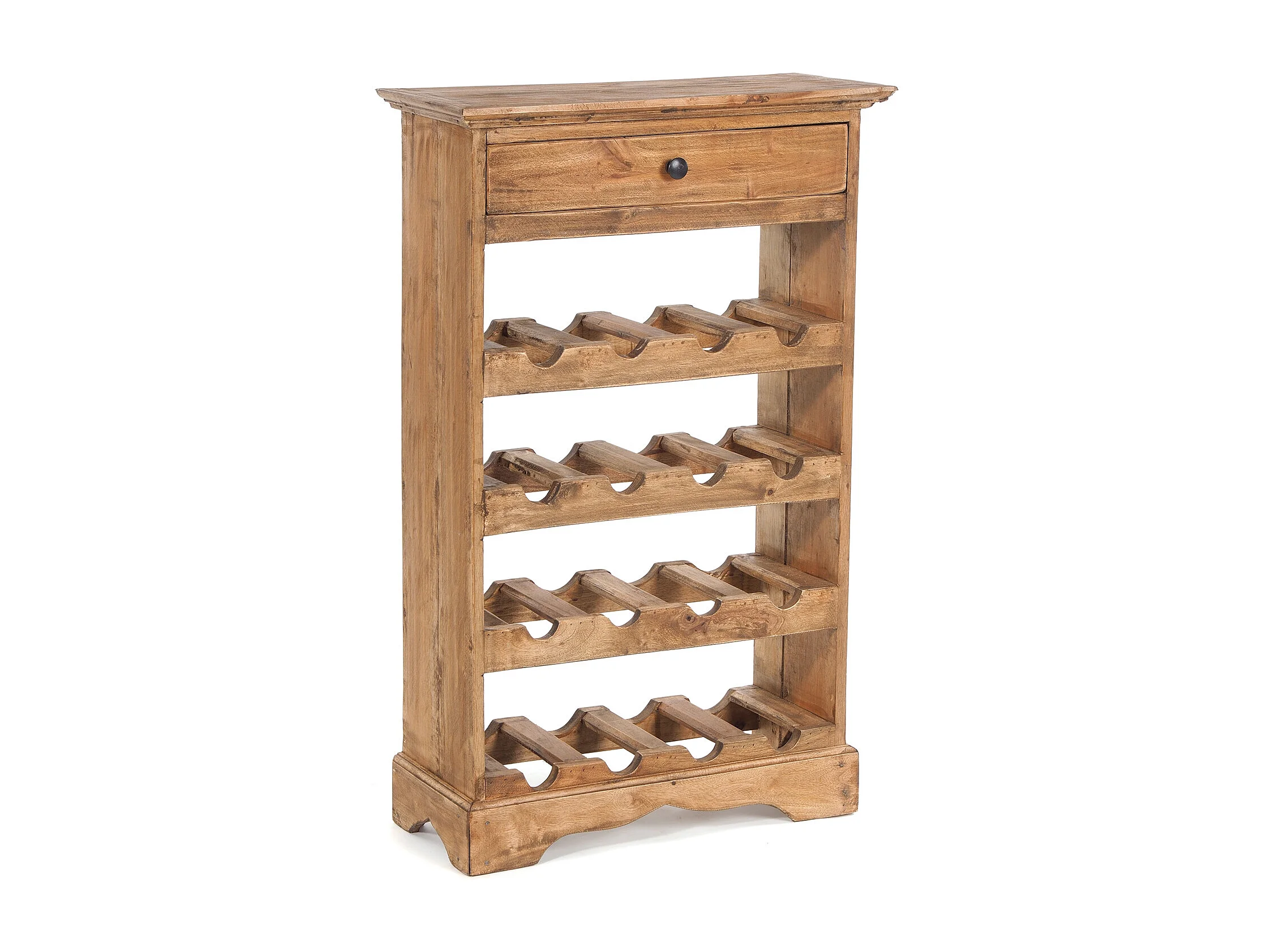 ÉTAGÈRE À BOUTEILLES CORTEZ 85 Bois de recyclage massif, pour 16 bouteilles, avec tiroir 01 natur-vintage