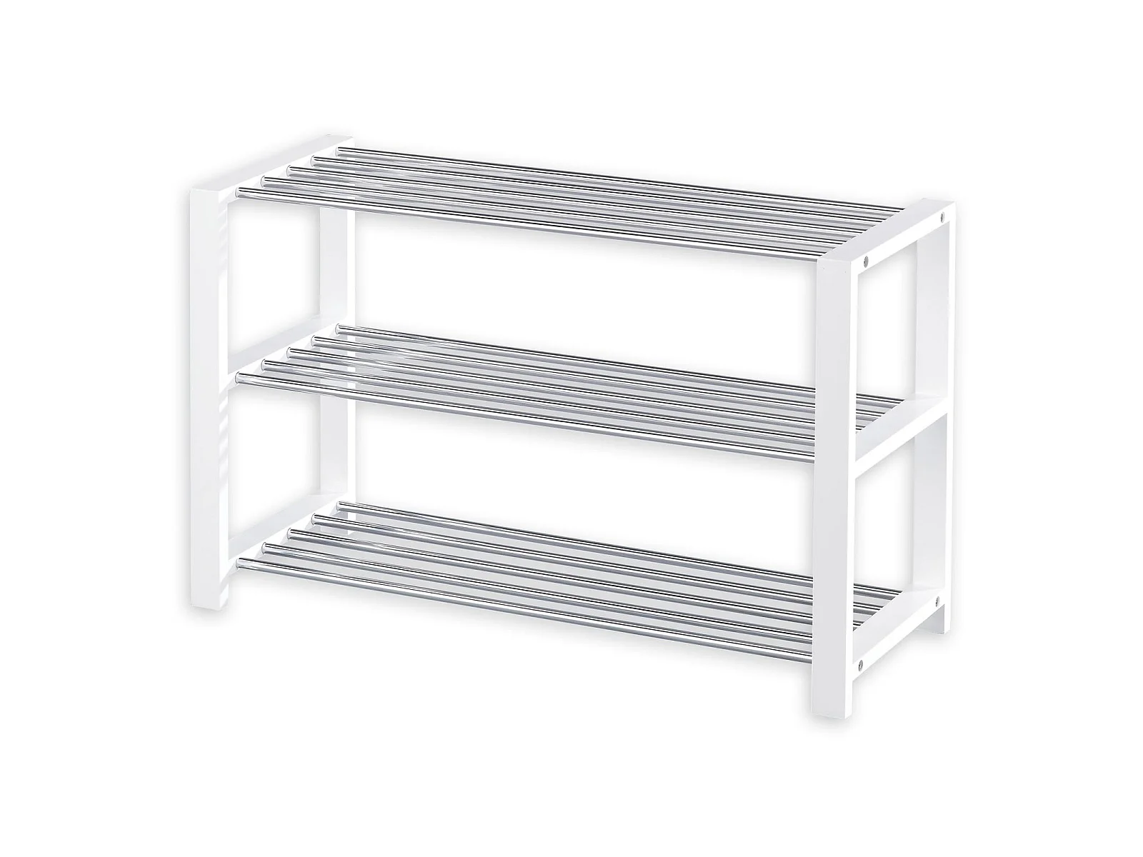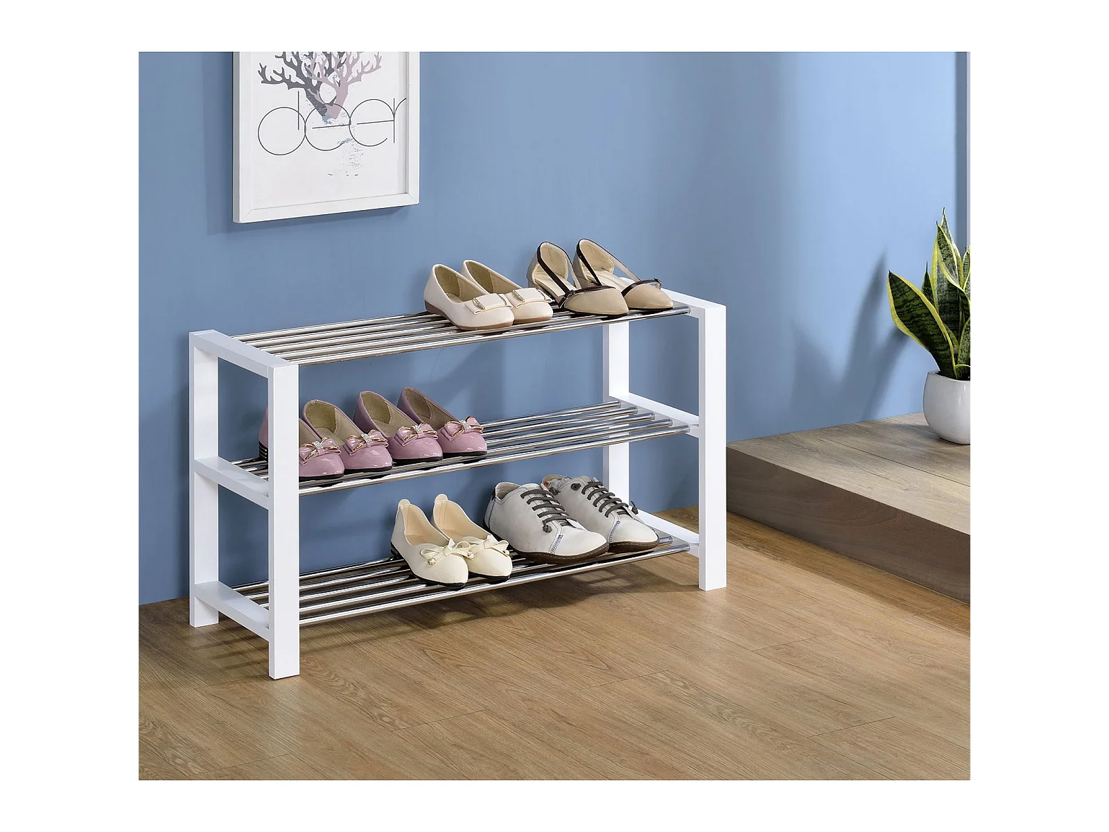 Etagère à chaussures RESA avec 3 tablettes pour 12 paires de chaussures, en pin massif lasuré blanc et métal