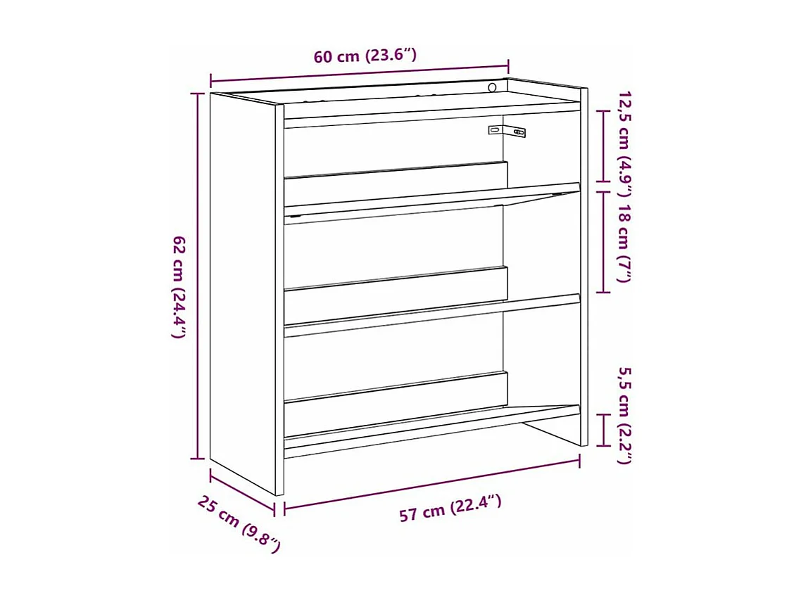 Étagère à chaussures blanc 80x25x61,5 bois d'ingénierie