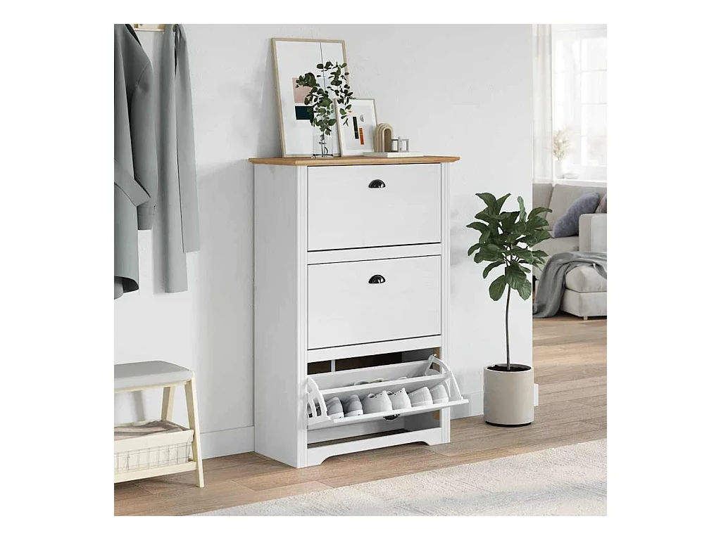 Étagère à chaussures blanc et marron 80x35x118 cm