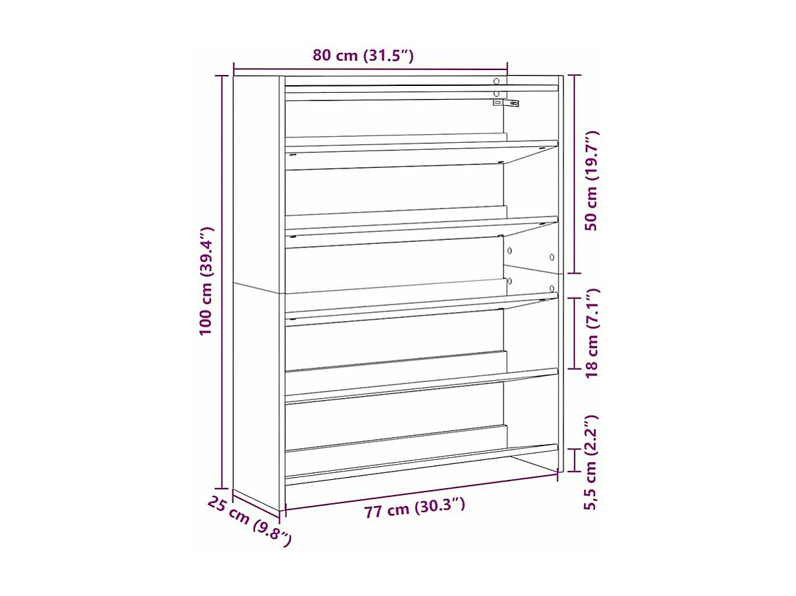 Étagère à chaussures chêne fumé 80x25x100 bois d'ingénierie