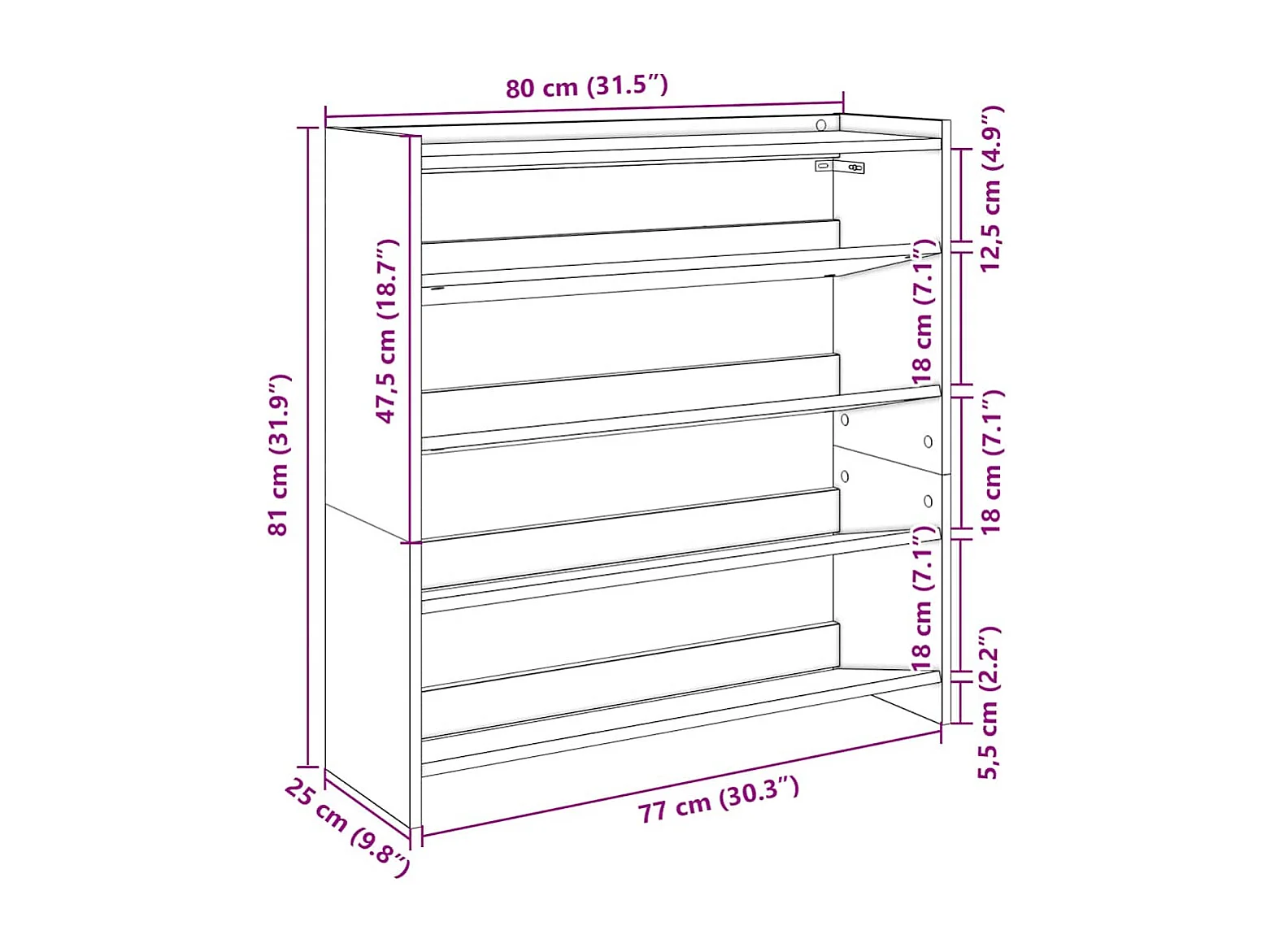Étagère à chaussures chêne fumé 80x25x81 cm bois d'ingénierie