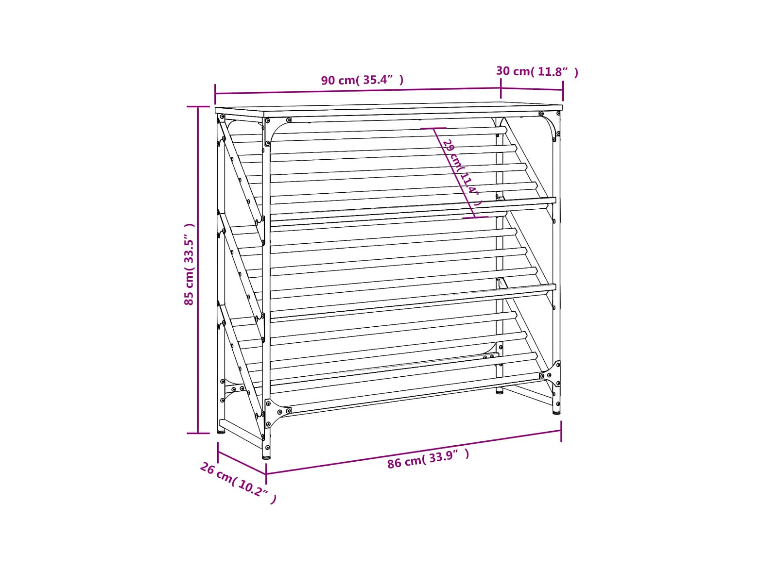 Étagère à chaussures chêne fumé 90x30x45 cm bois d'ingénierie