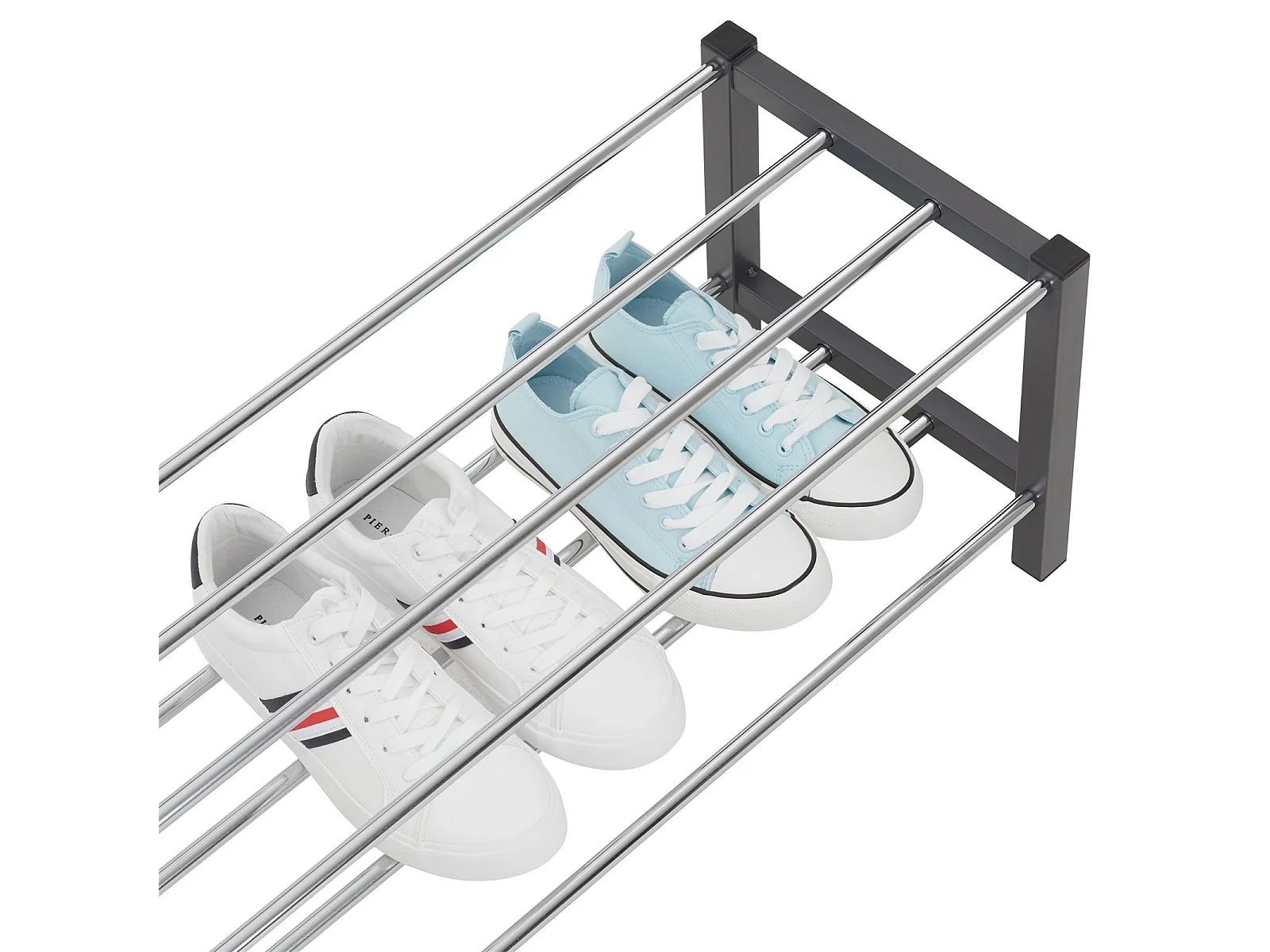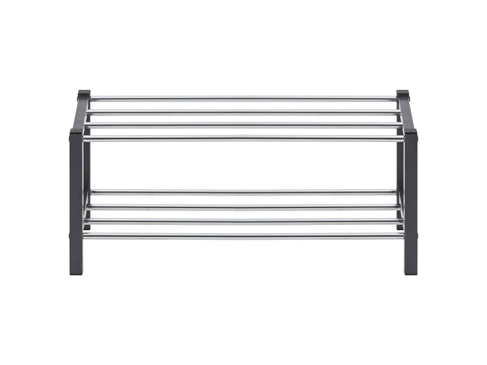 Étagère à chaussures DUBLIN rangement porte-chaussures avec 2 niveaux pour 8 paires en métal chromé et laqué gris