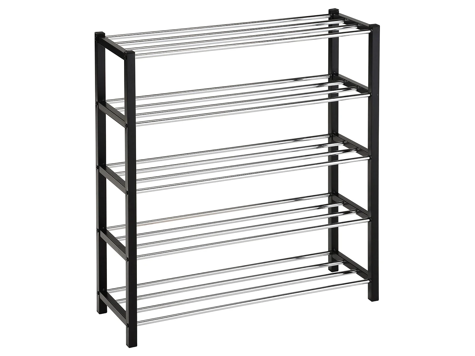 Etagère à chaussures DUBLIN rangement porte-chaussures avec 5 niveaux pour 20 paires en métal chromé et laqué noir