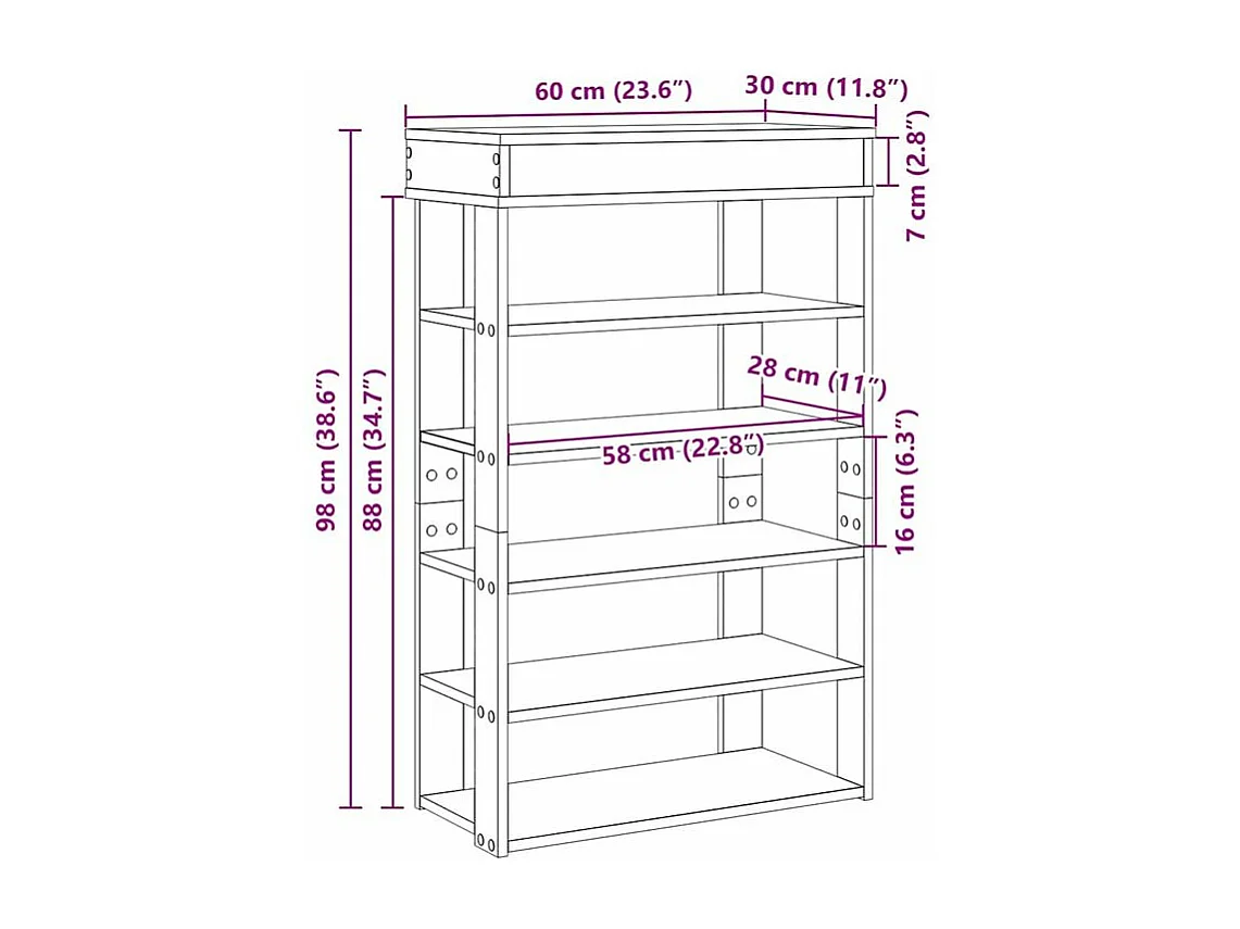 Étagère à chaussures sonoma gris 60x30x98 bois d'ingénierie