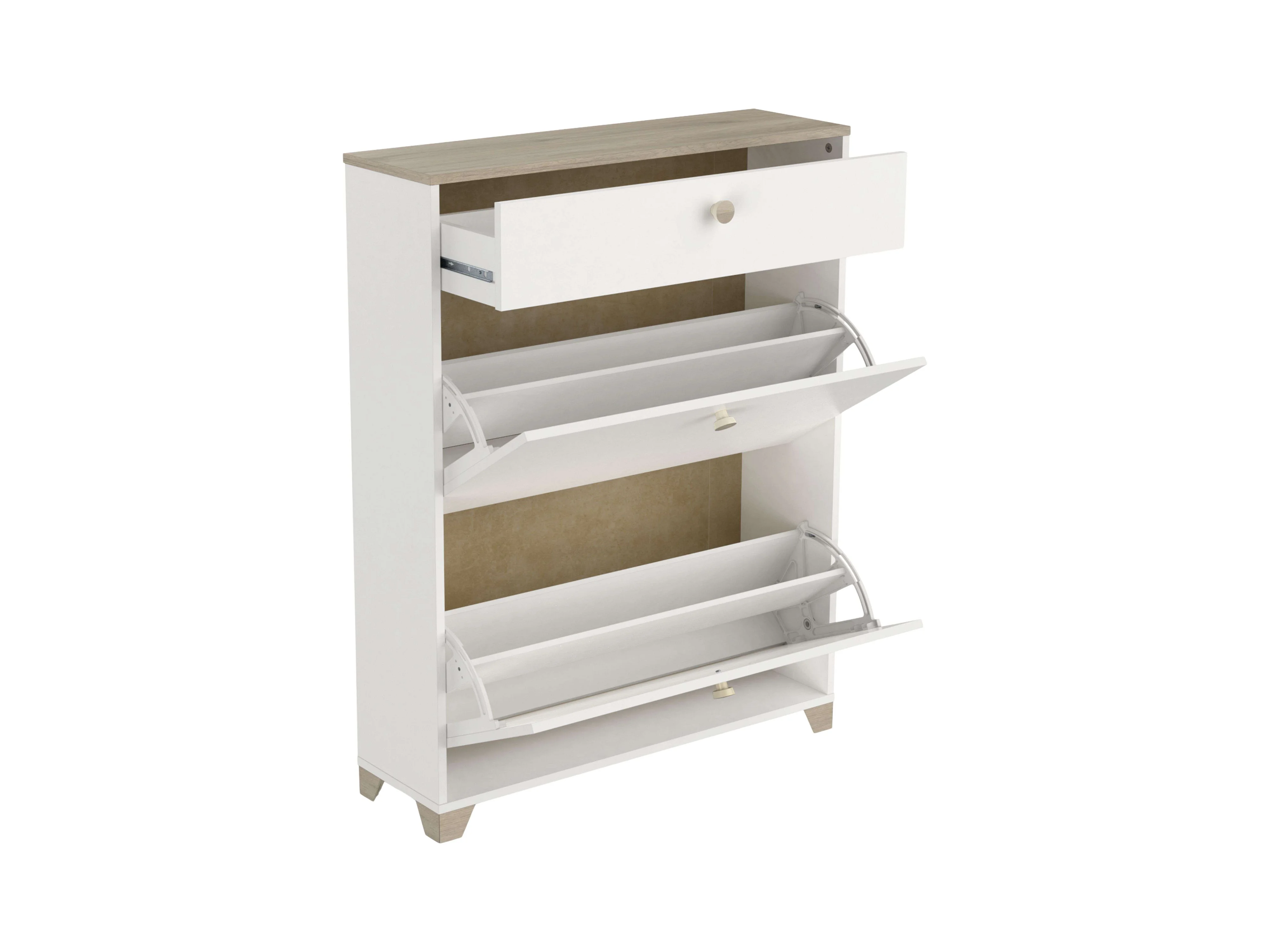 Étagère à chaussures Kronberg blanche et chêne 81 x 104 x 24 cm pour couloir/réception