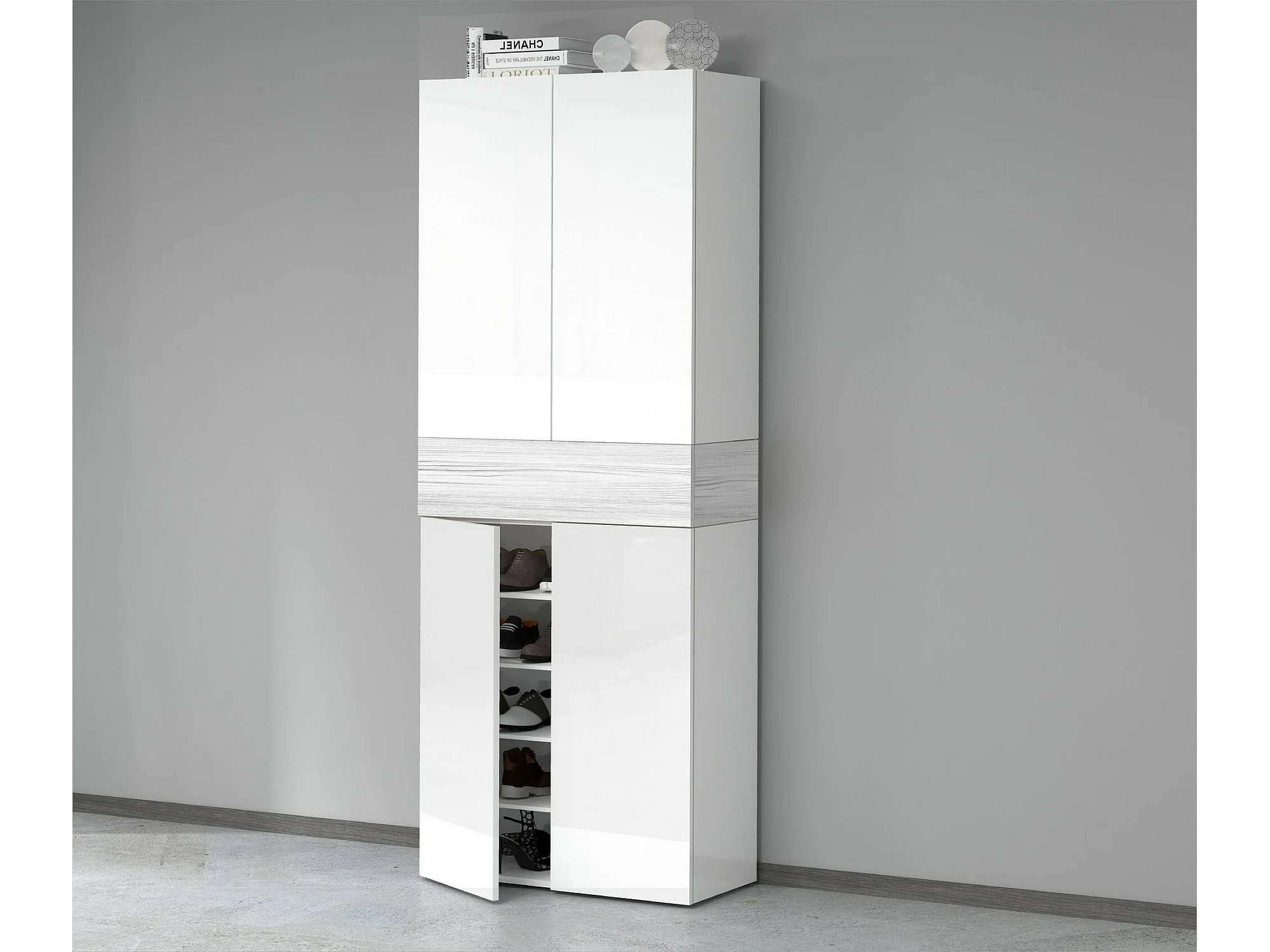 Étagère à chaussures Moris, meuble à chaussures peu encombrant à 5 portes, armoire d'entrée multifonctionnelle, 76x38h200 cm, effet mélèze blanc