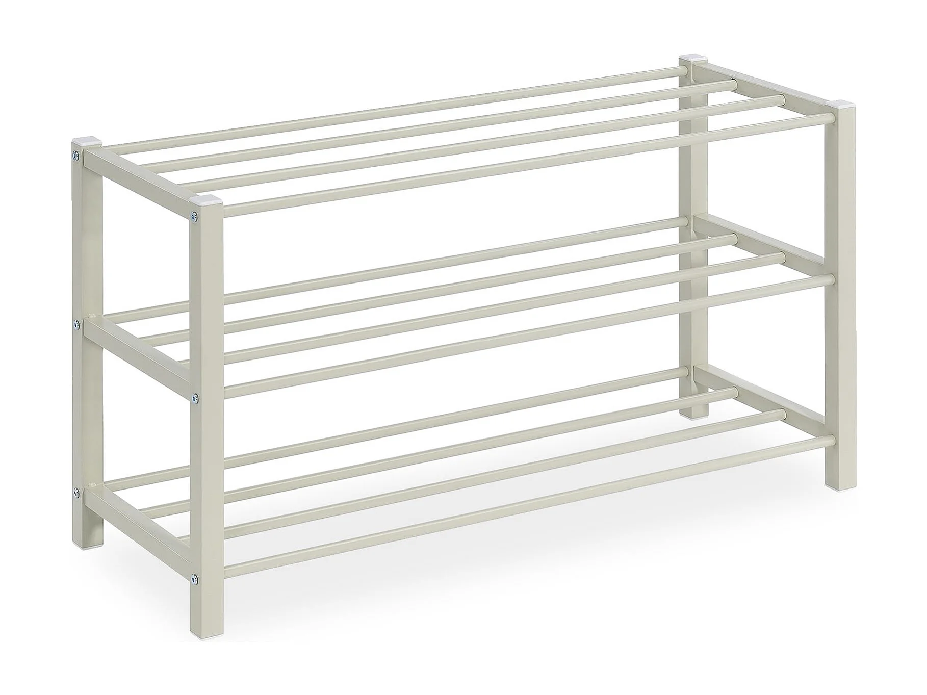 Étagère à chaussures DUBLIN beige rangement porte-chaussures avec 3 niveaux pour 12 paires en métal chromé