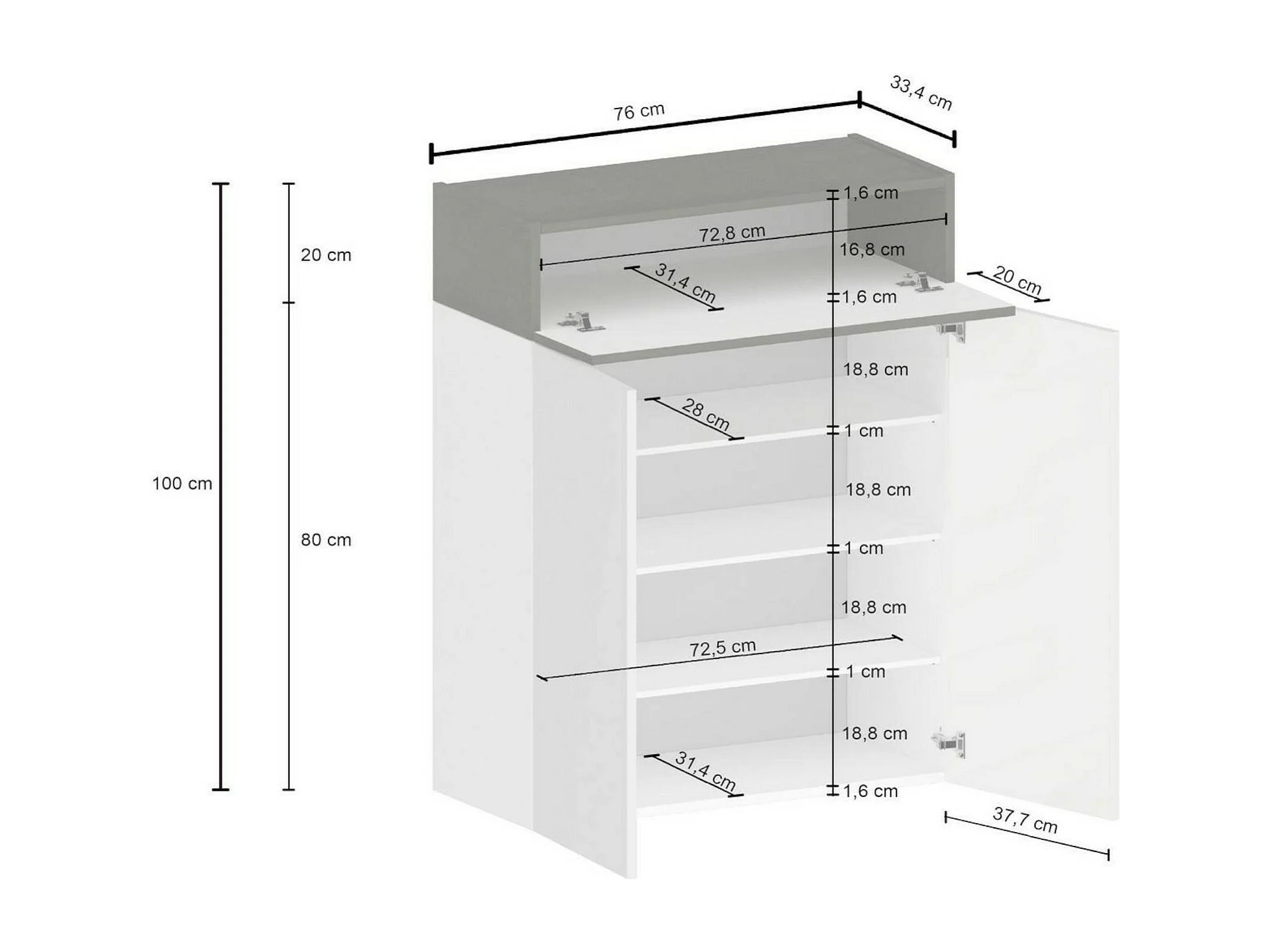 Étagère à chaussures Oliviero, étagère à chaussures peu encombrante à 3 portes, armoire d'entrée multifonctionnelle, 76x38h100 cm, blanc et chêne