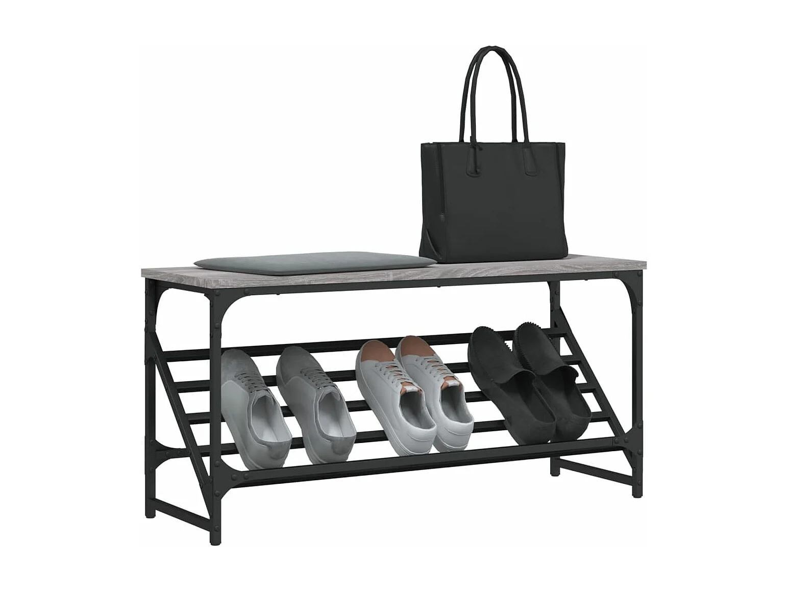 Étagère à chaussures pieds en métal Gris 106x35x45 Bois OSLO