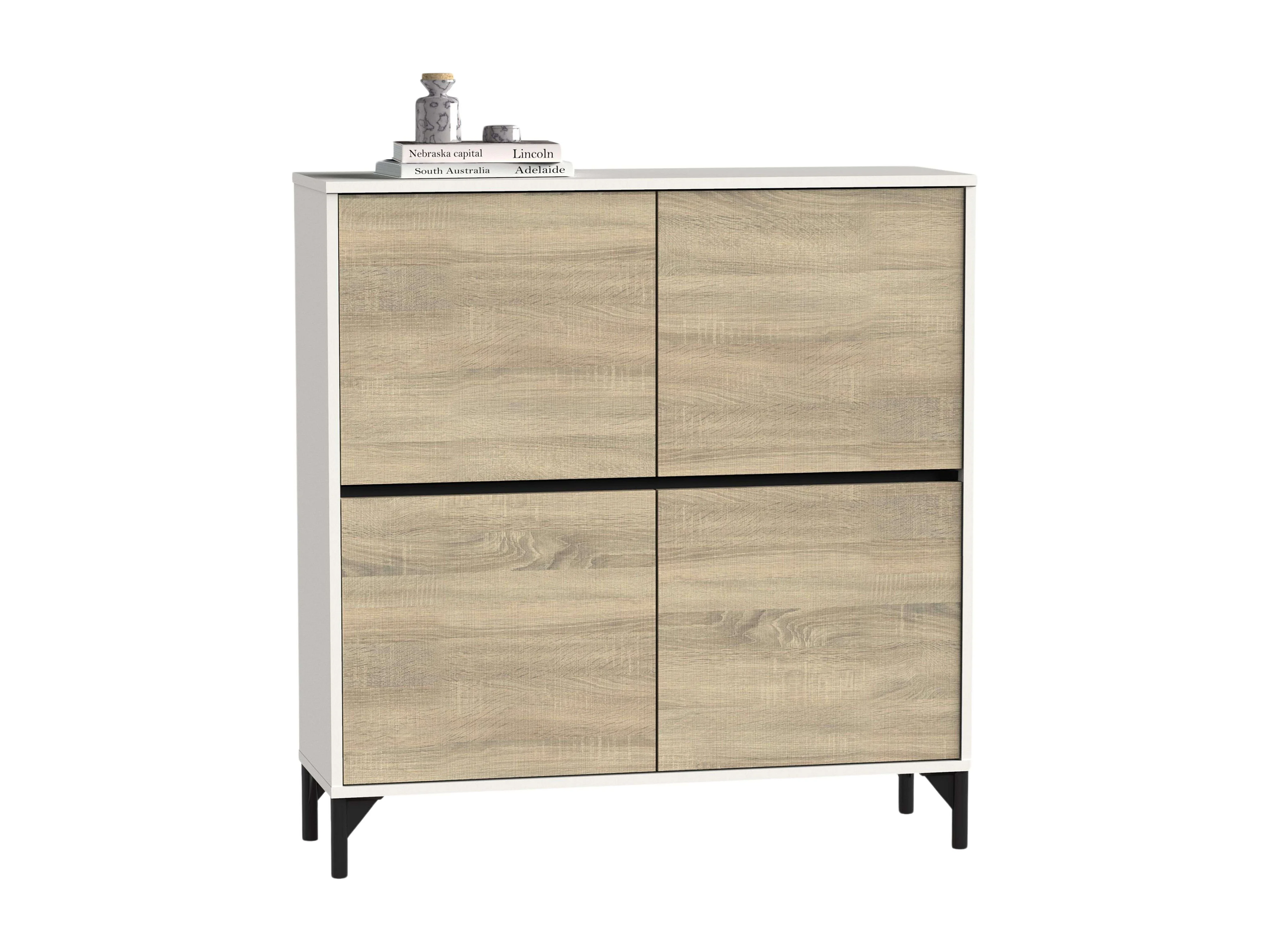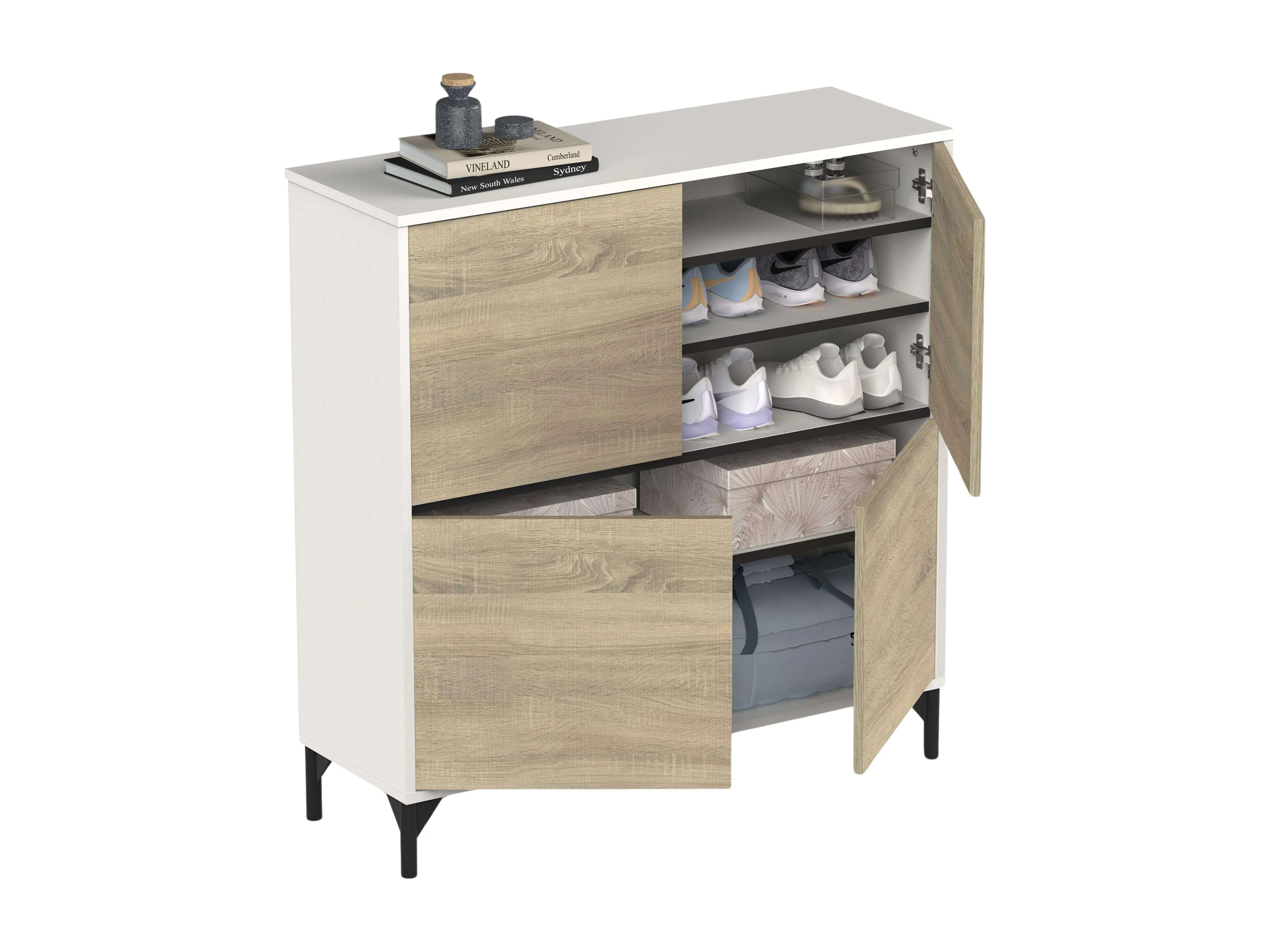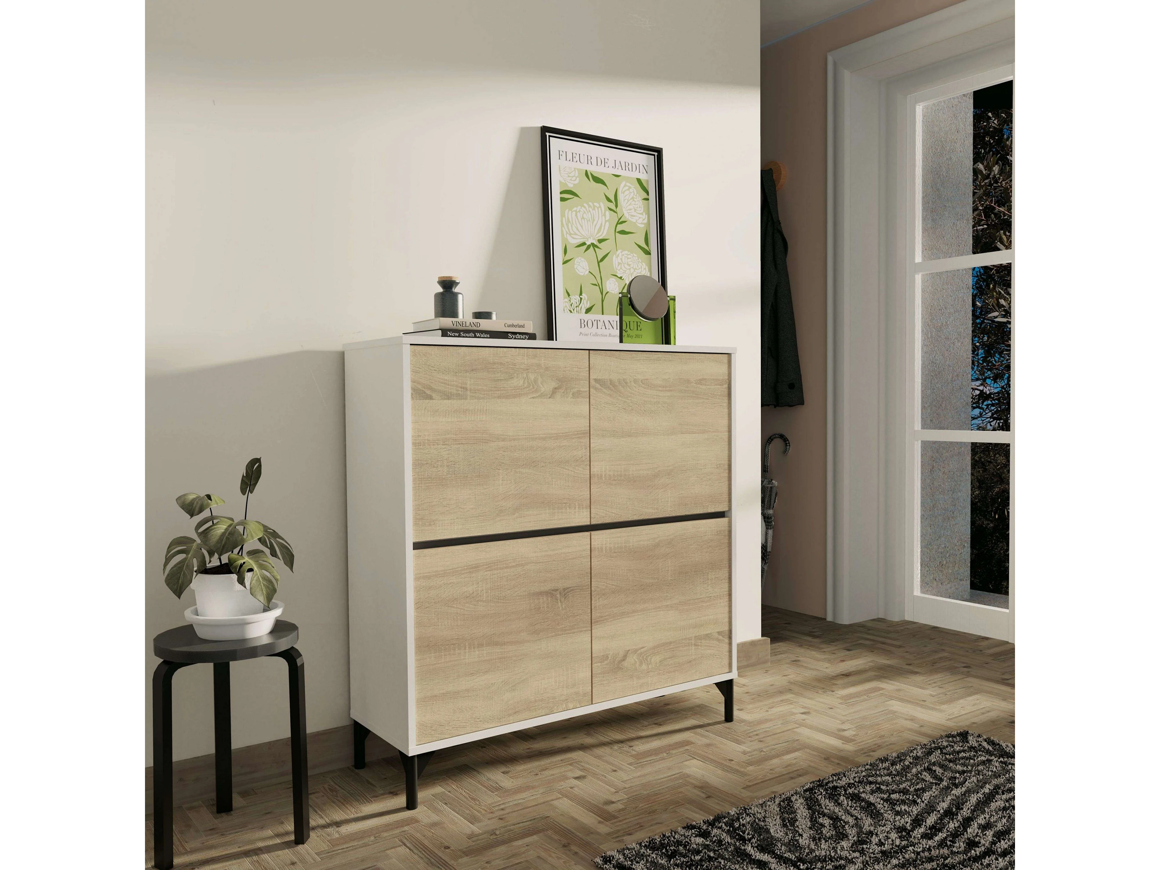 Étagère à chaussures Tokio 4 portes 5 étagères Chêne blanc mat 101 cm