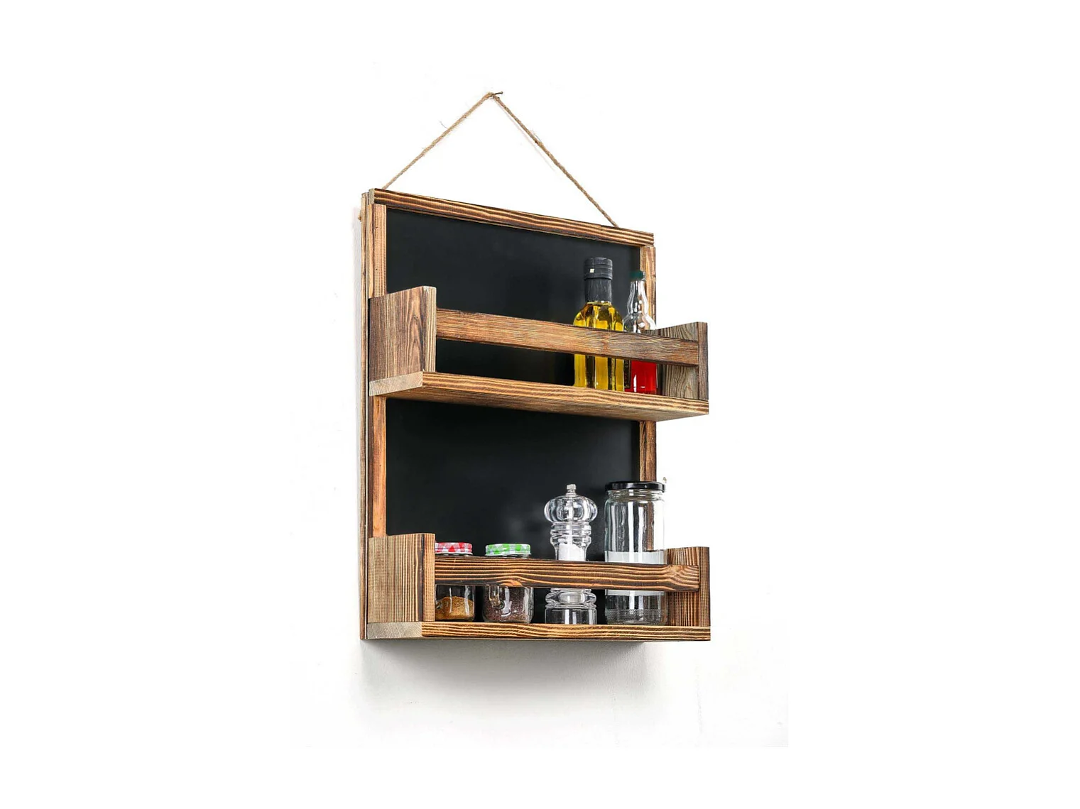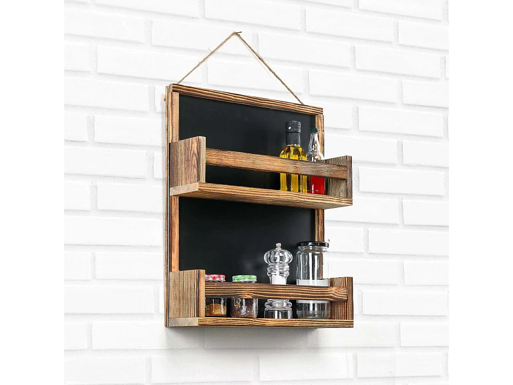 Etagère murale géométrique en métal noir et bois massif L60 cm