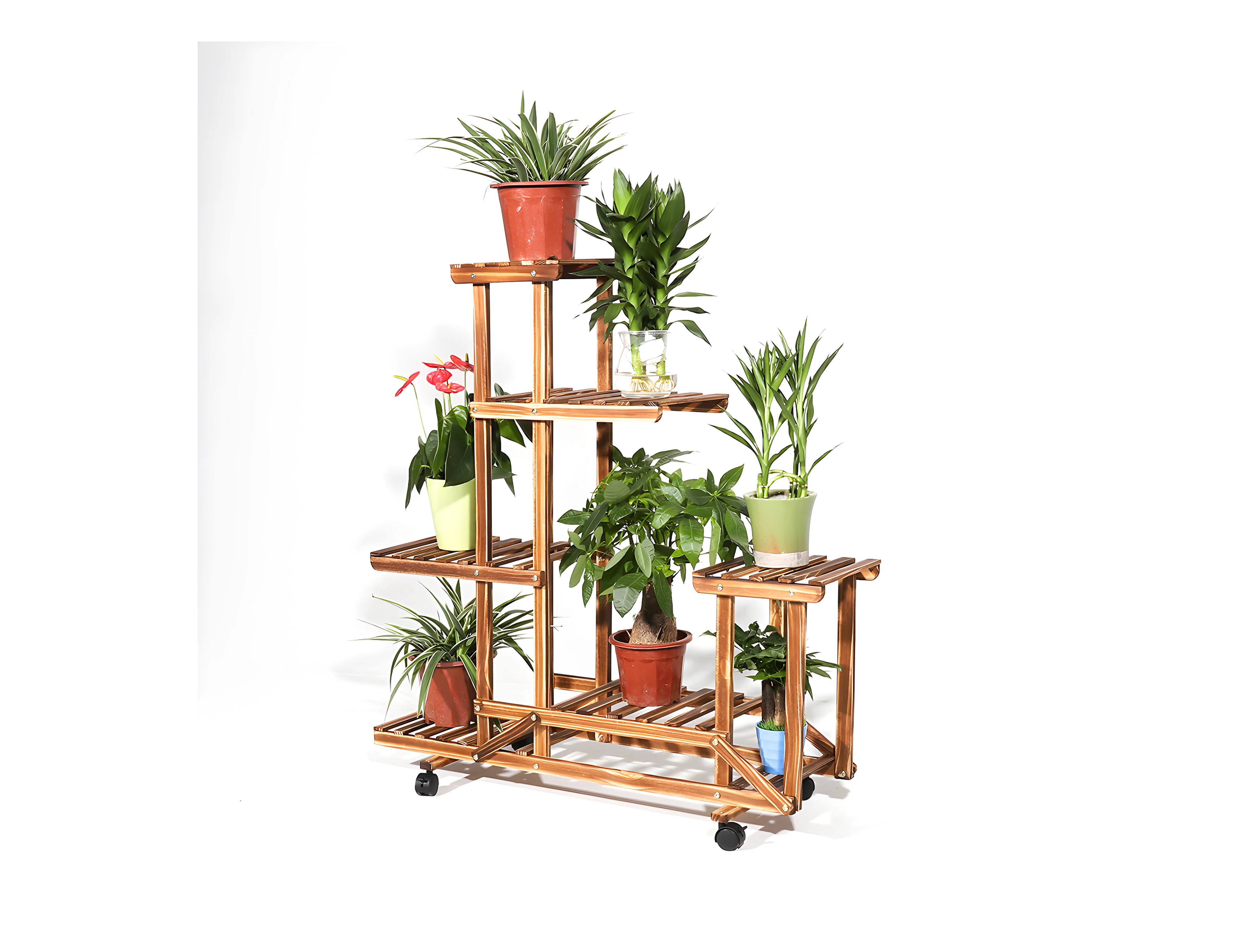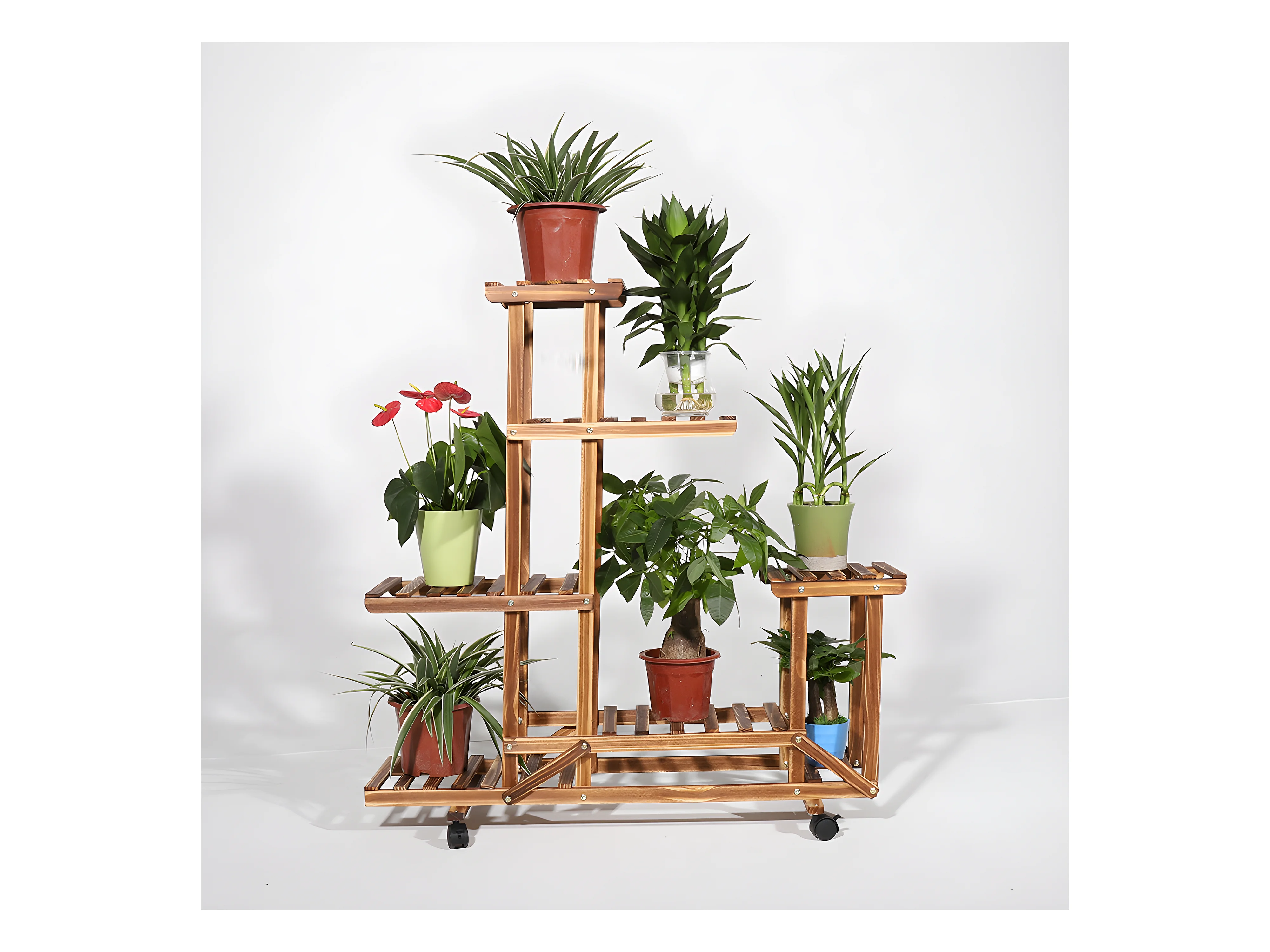 Étagère à fleurs à roulettes porte plante en bois pour balcon salon jardin 95x25x102cm