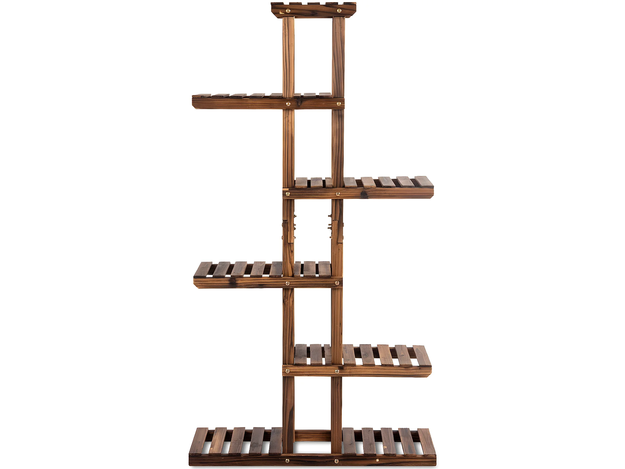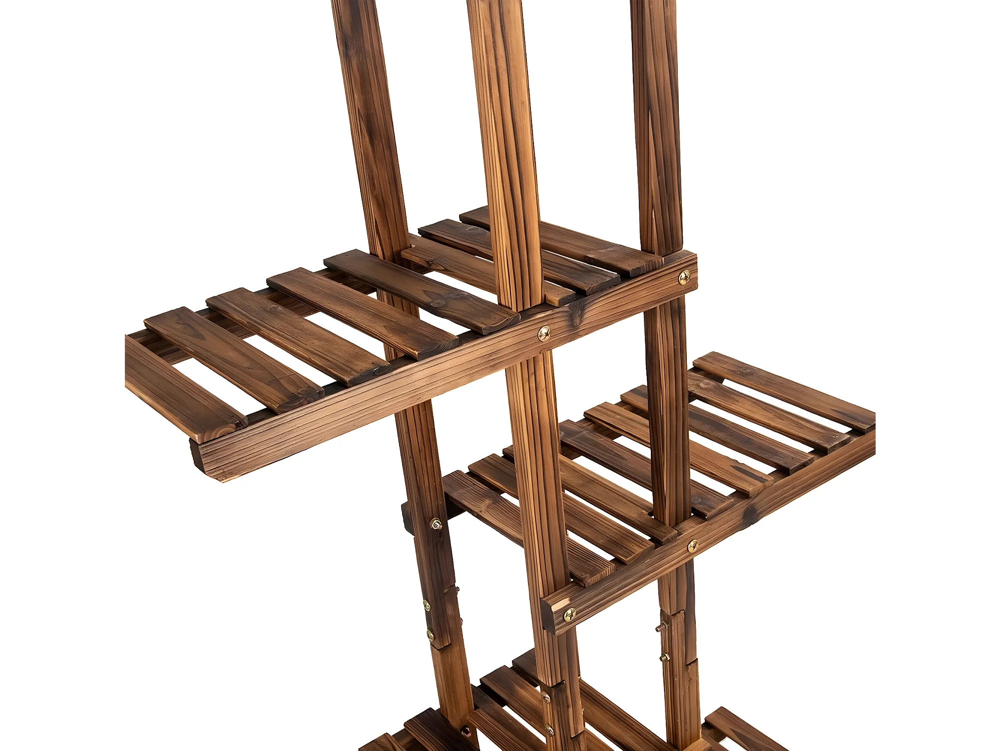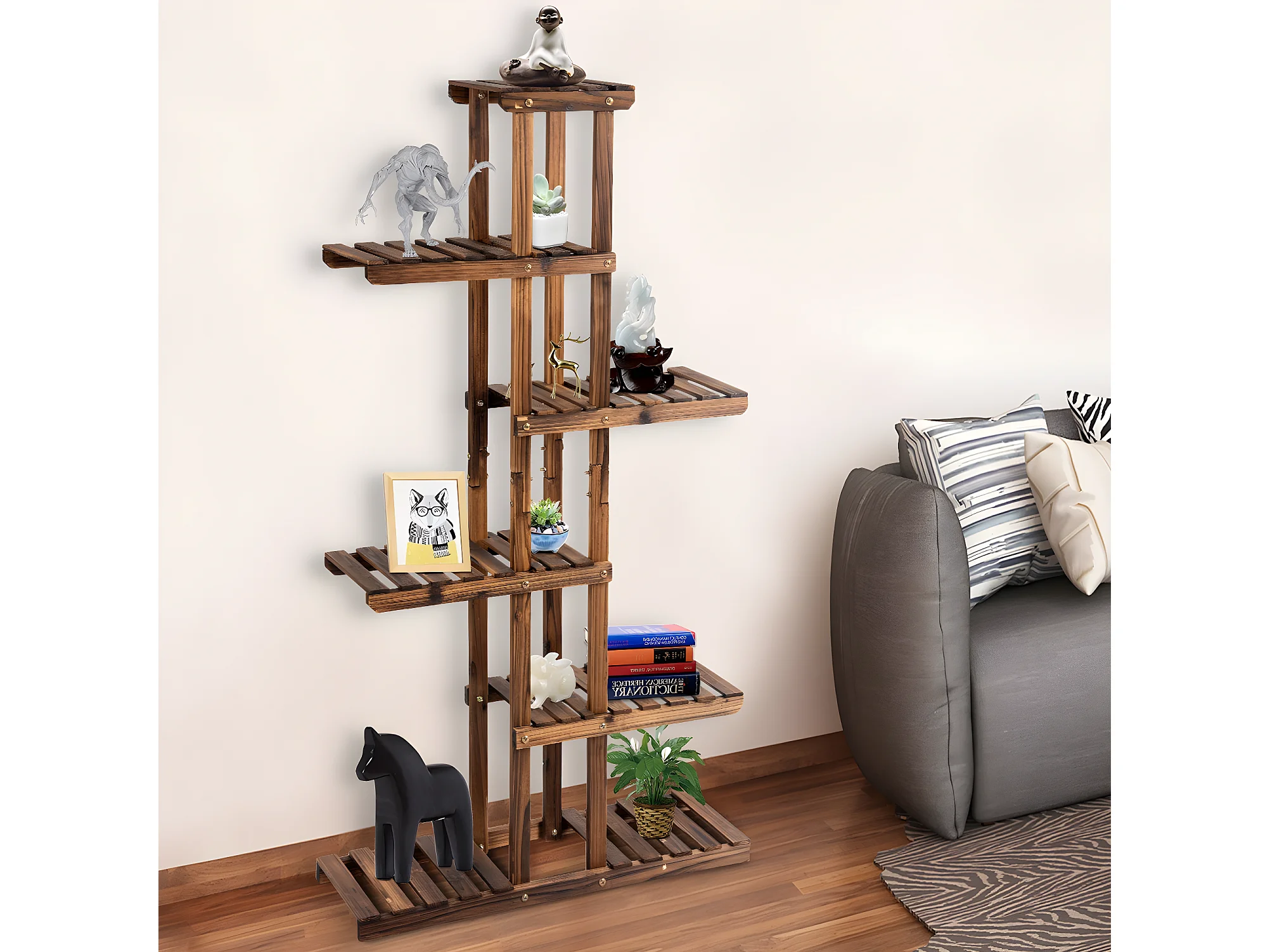 Étagère à fleurs bois marron carbonisé rangement 6 niveaux support de pot salon