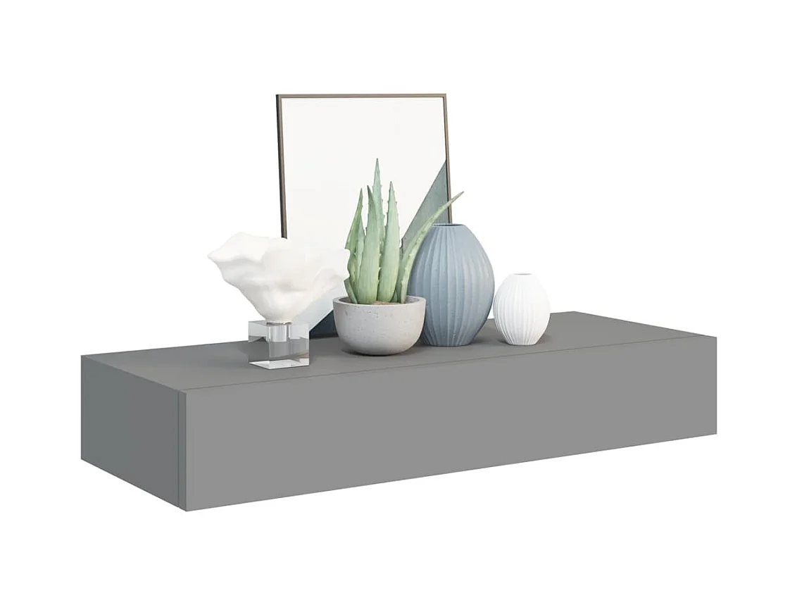 Étagère à tiroir murale Gris 60x23,5x10 cm MDF OFR61796 BonneVie Meuble