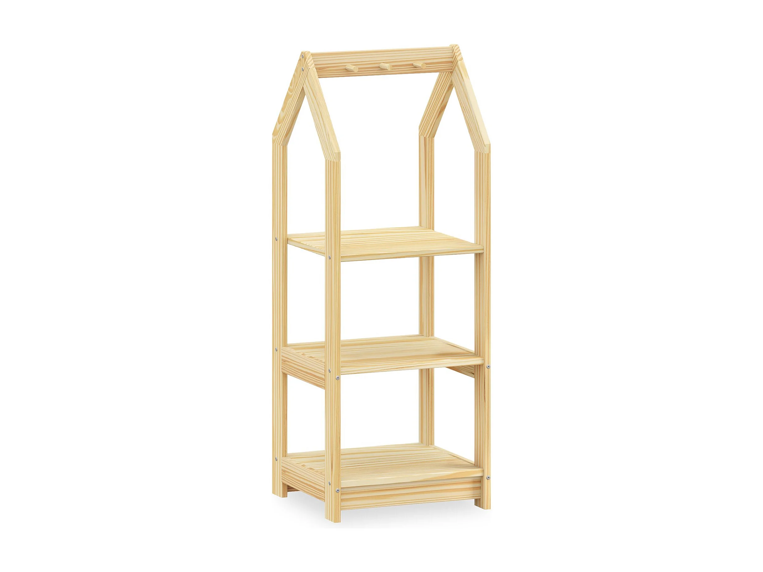 Penderie enfant DANILO avec tringle à vêtements et deux étagères, design tipi, en bois massif, 83 x 115 x 50 cm, coloris naturel