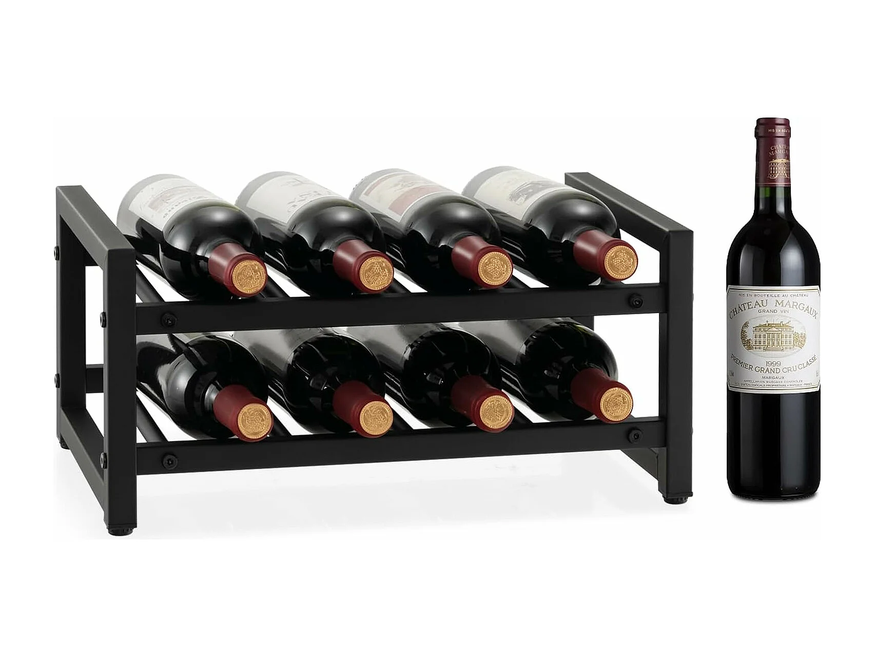 Étagère à vin à 2 niveaux pour 8 bouteilles, surface antirouille, casier à vin, noir
